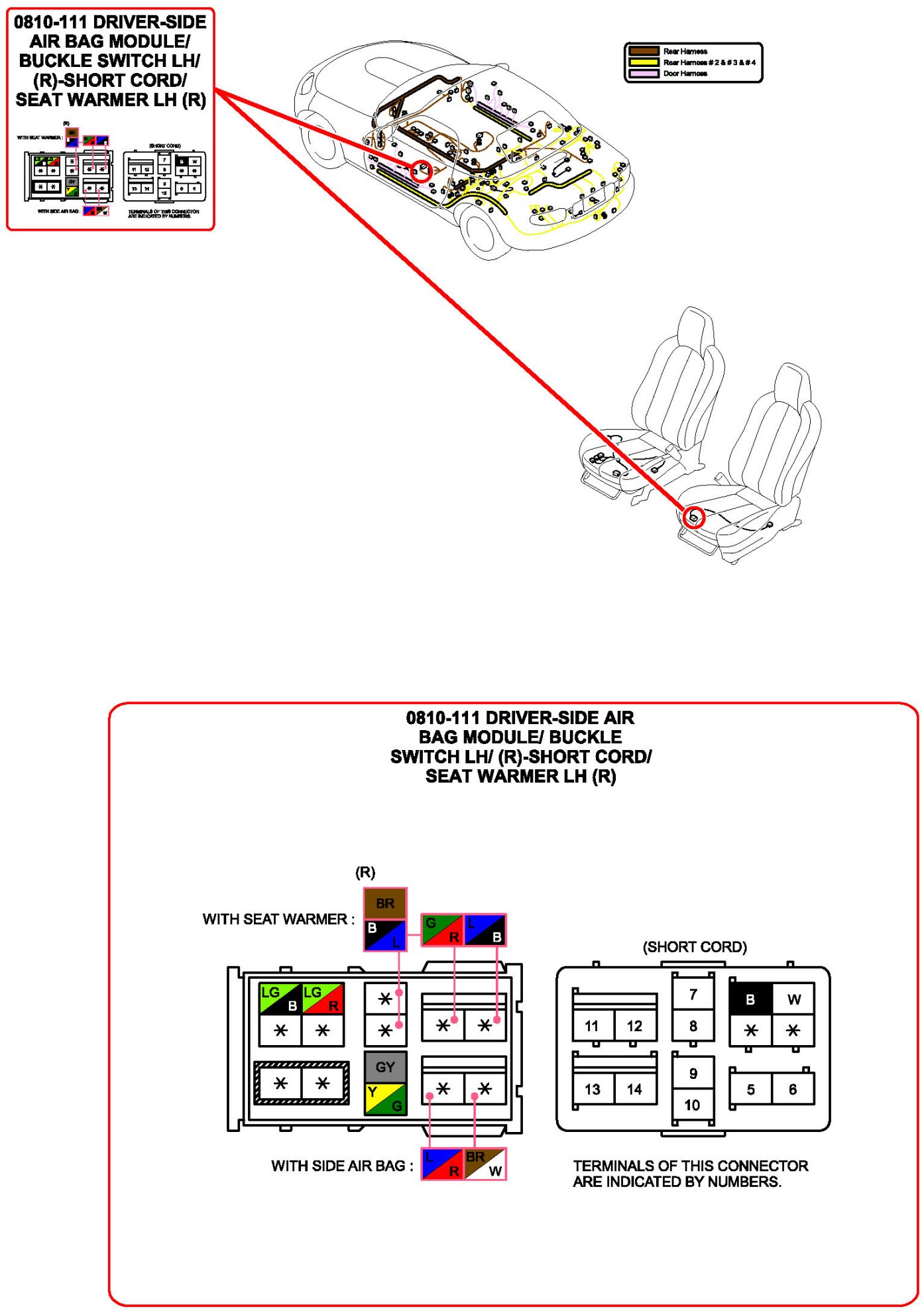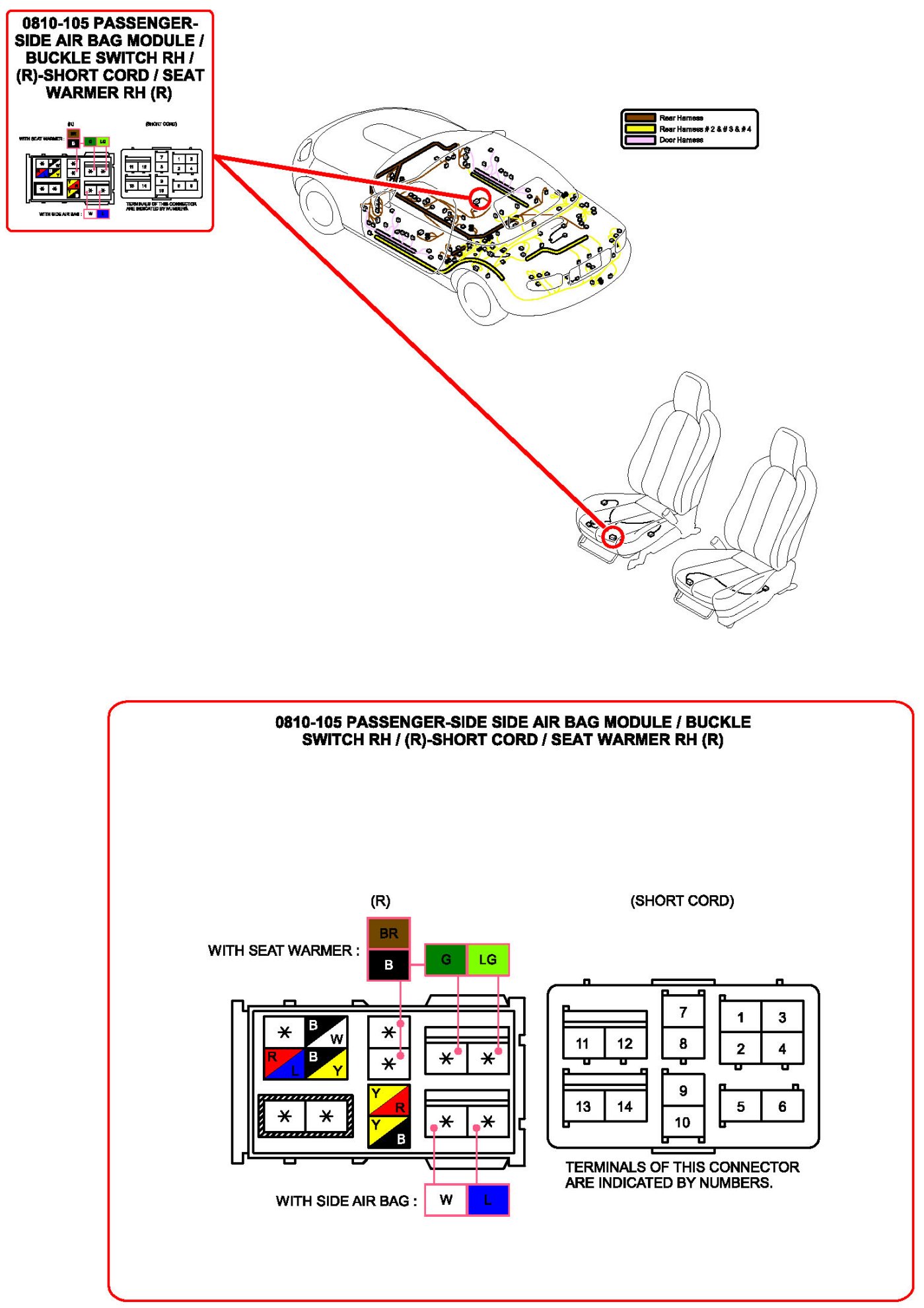 0810-105 Passenger-Side Air Bag Module / Buckle Switch RH / Short Cord / Seat Warmer RH: