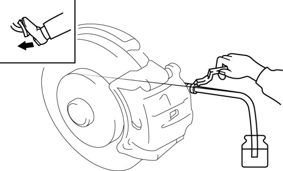 1. Remove the bleeder cap on the brake caliper, and attach a vinyl tube to the bleeder screw.
