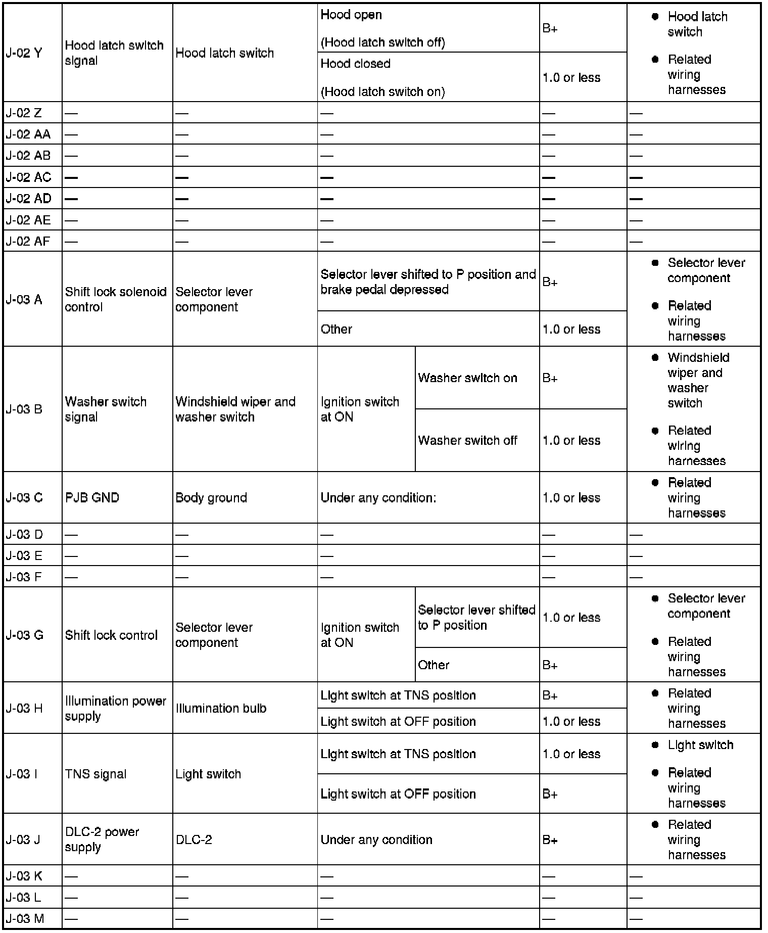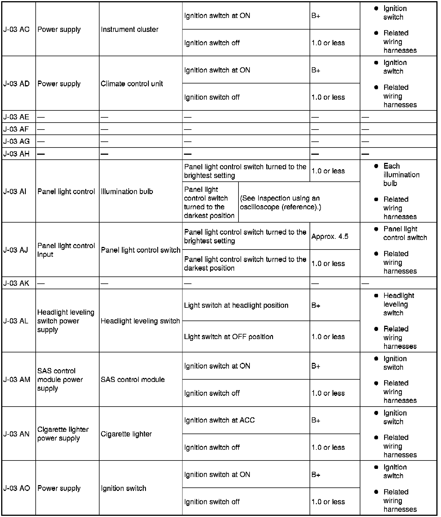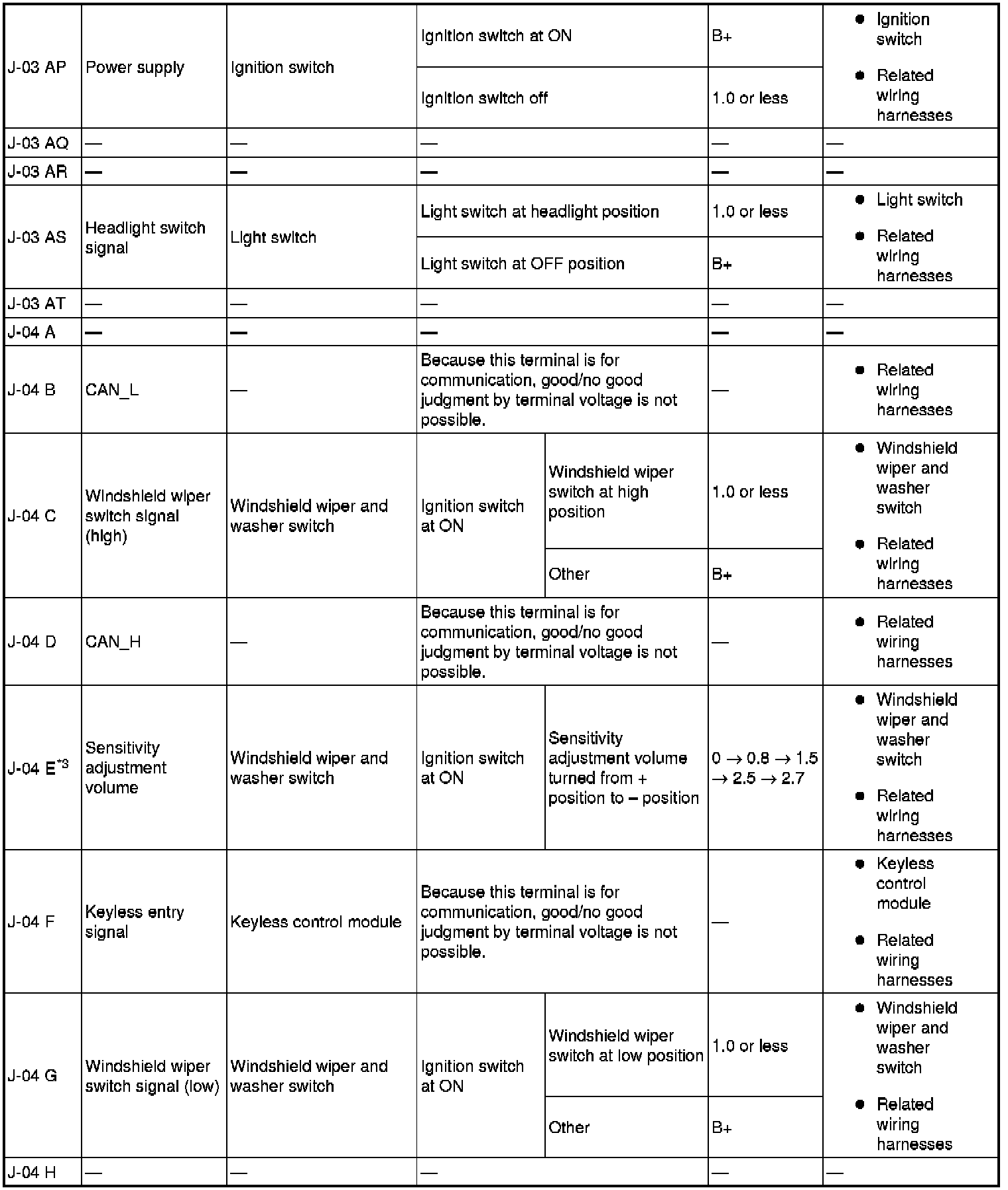 - Terminal connected: J-03 AI (+)-Negative battery terminal