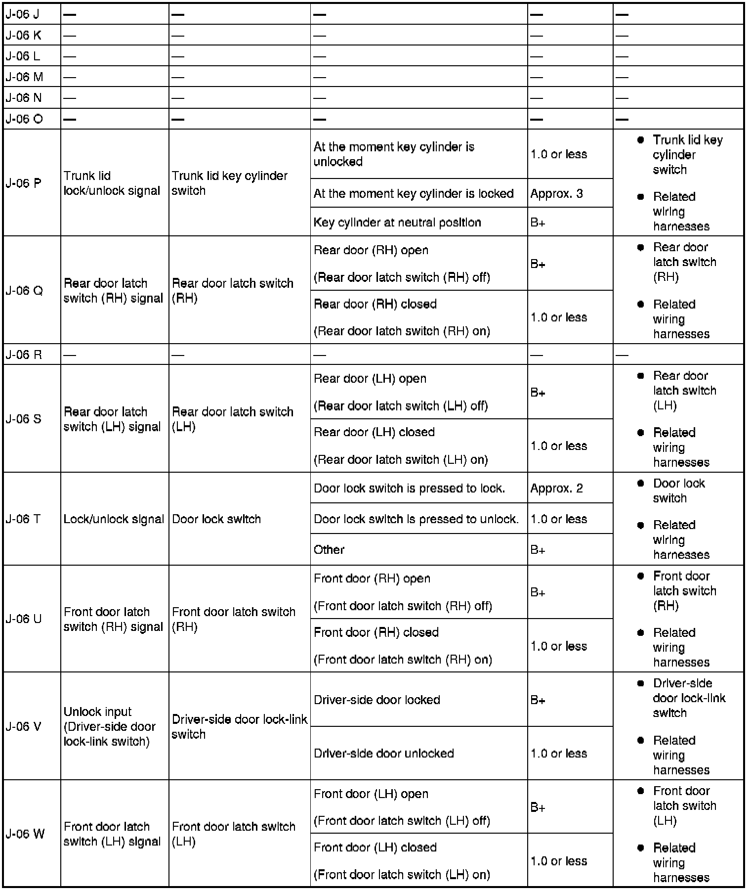 - CLKSW_UNLK: Central lock switch unlock