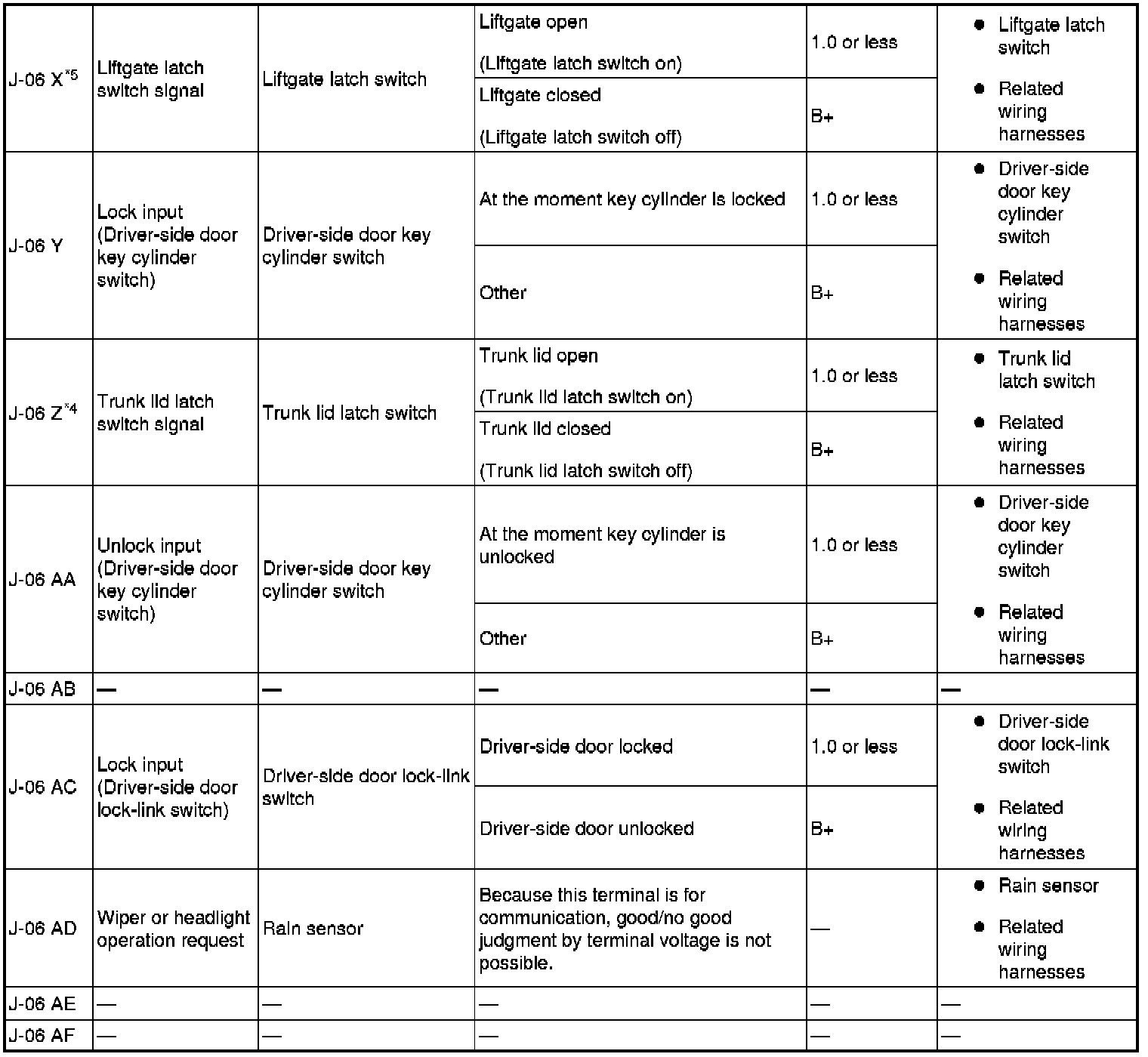 - T_AJAR: Trunk/liftgate ajar