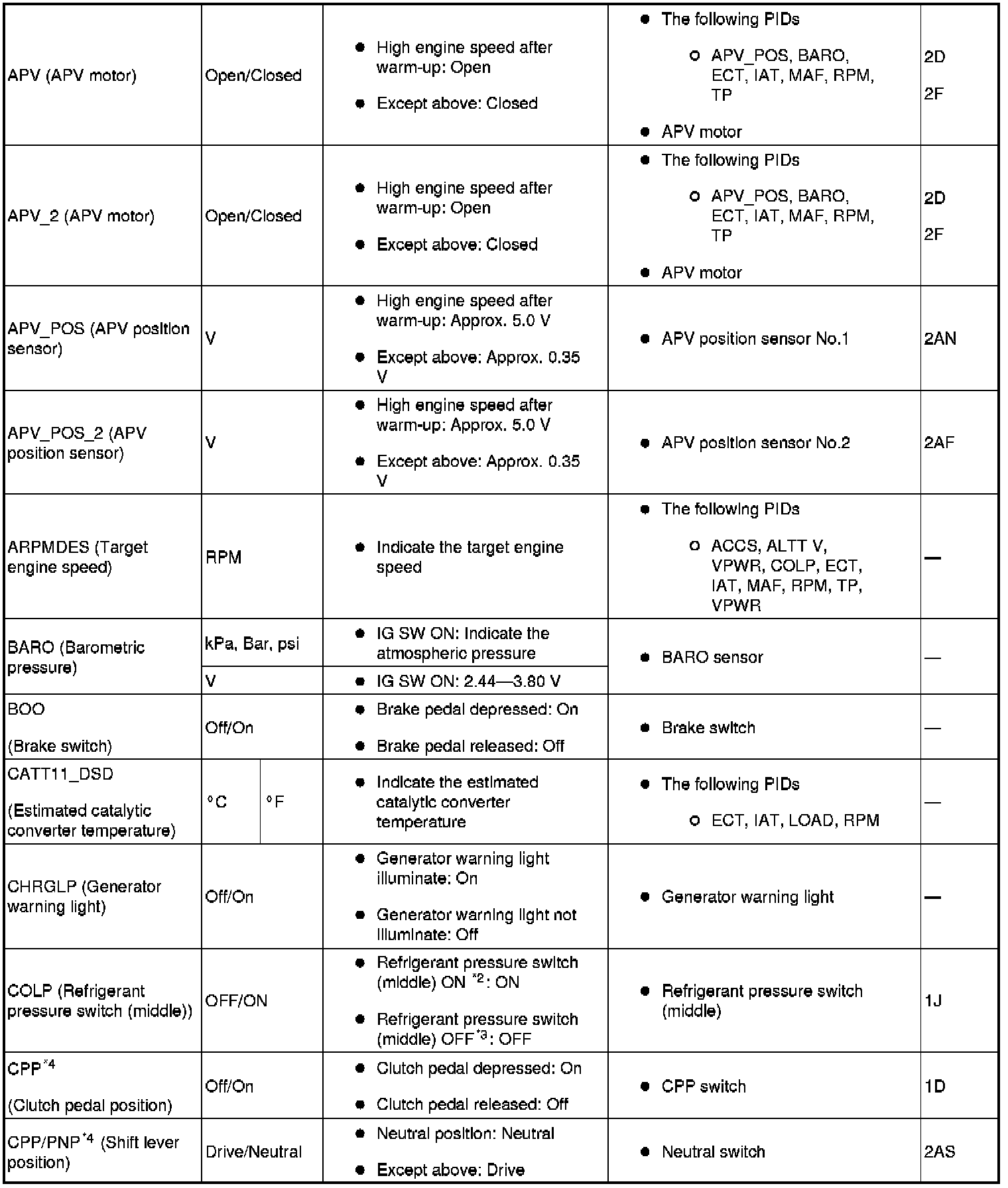 PID/Data Monitor Table (Reference) (Part 4):