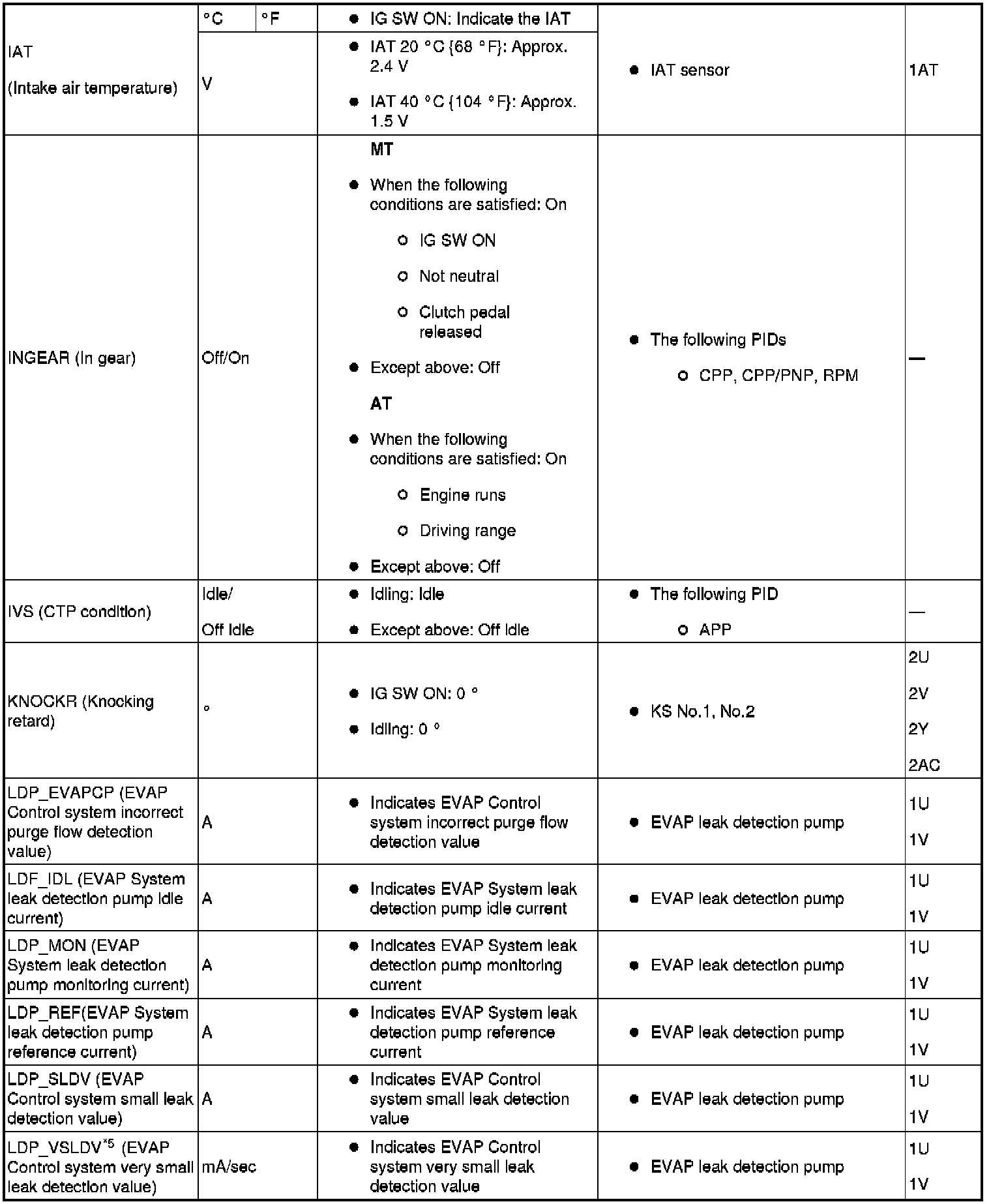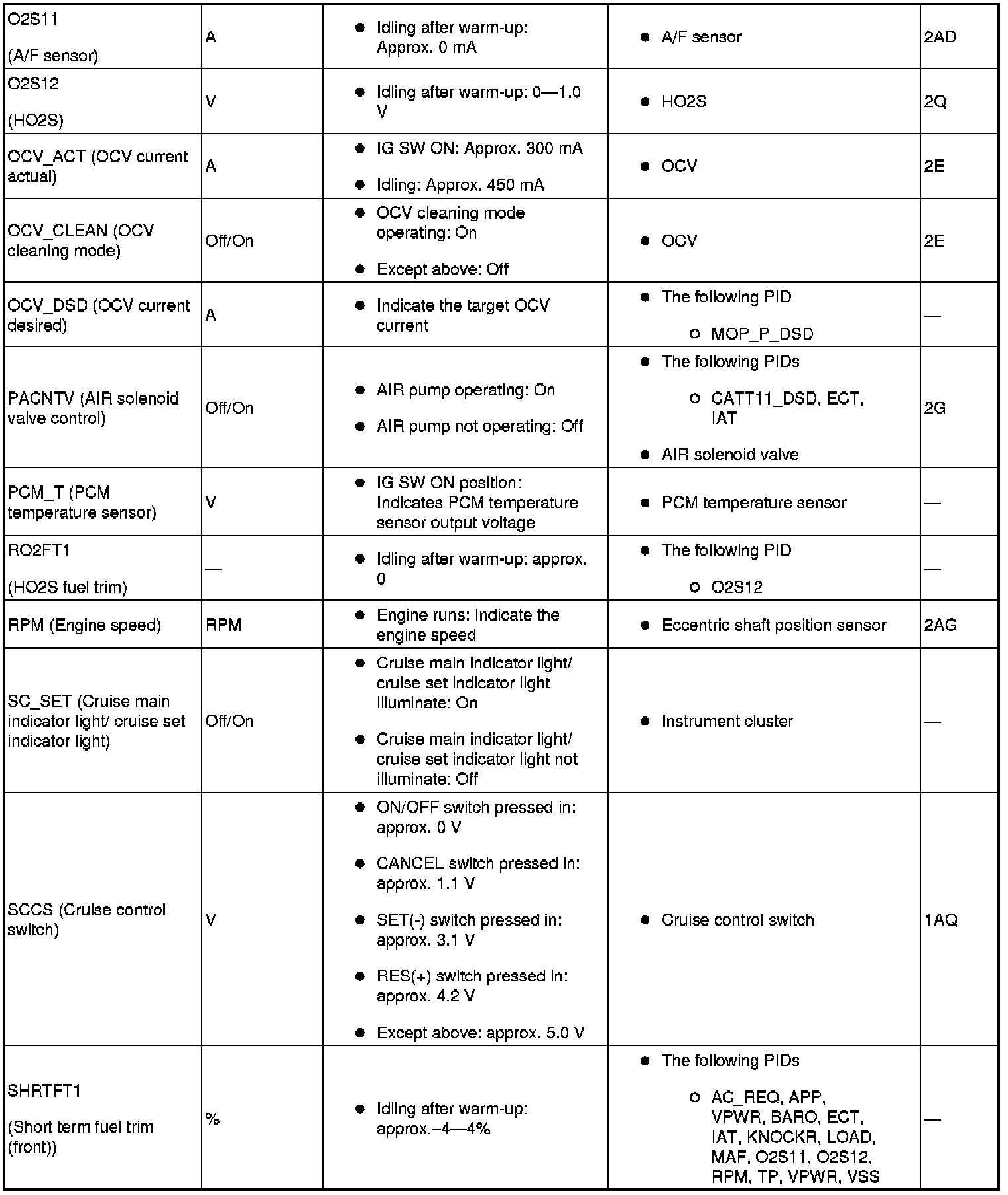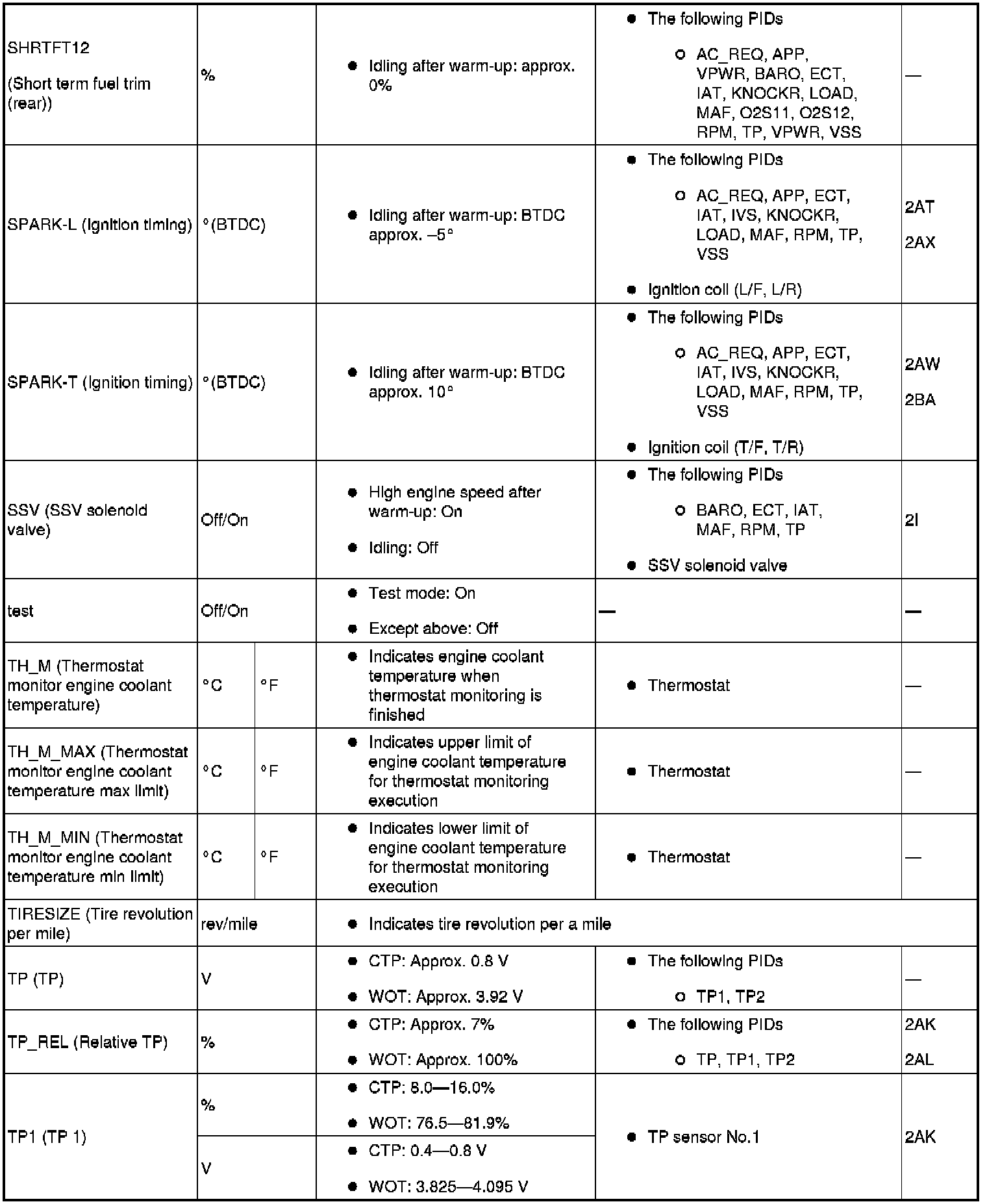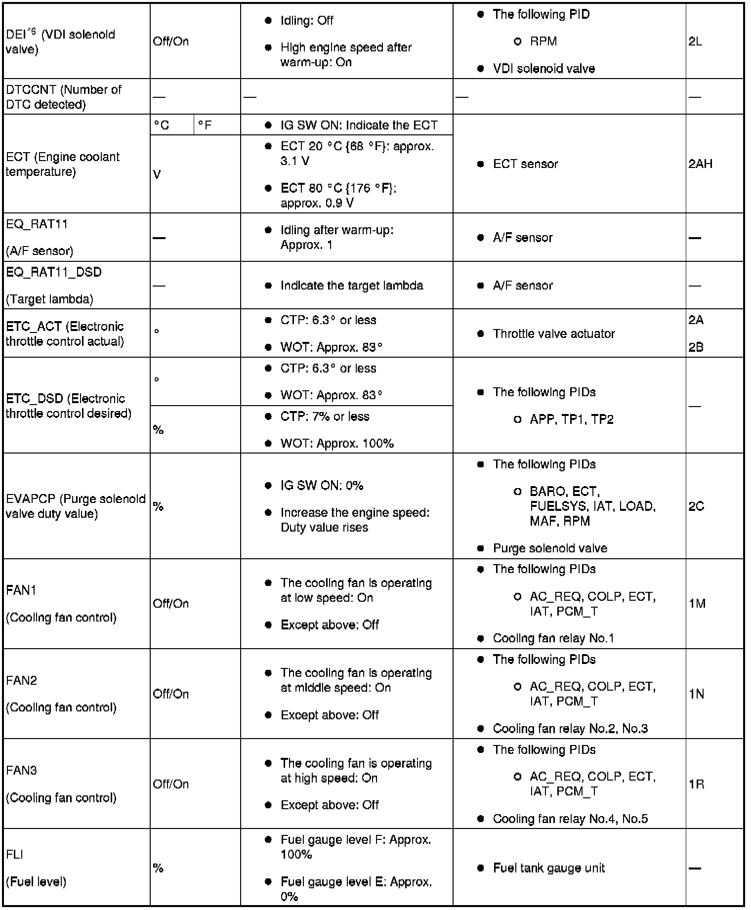 PID/Data Monitor Table (Reference) (Part 1):