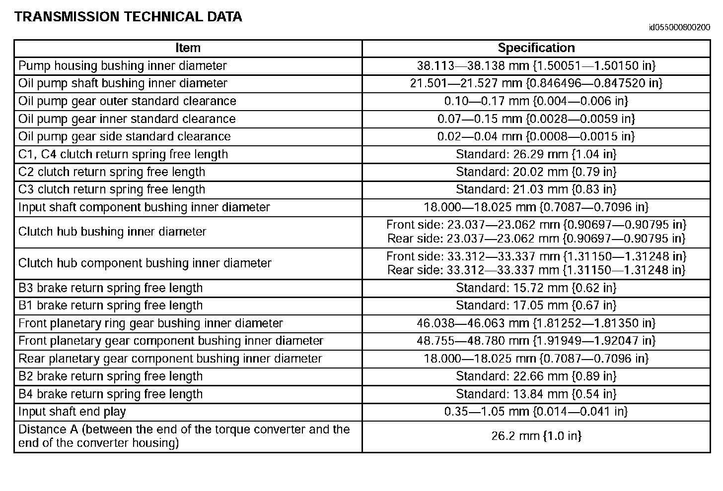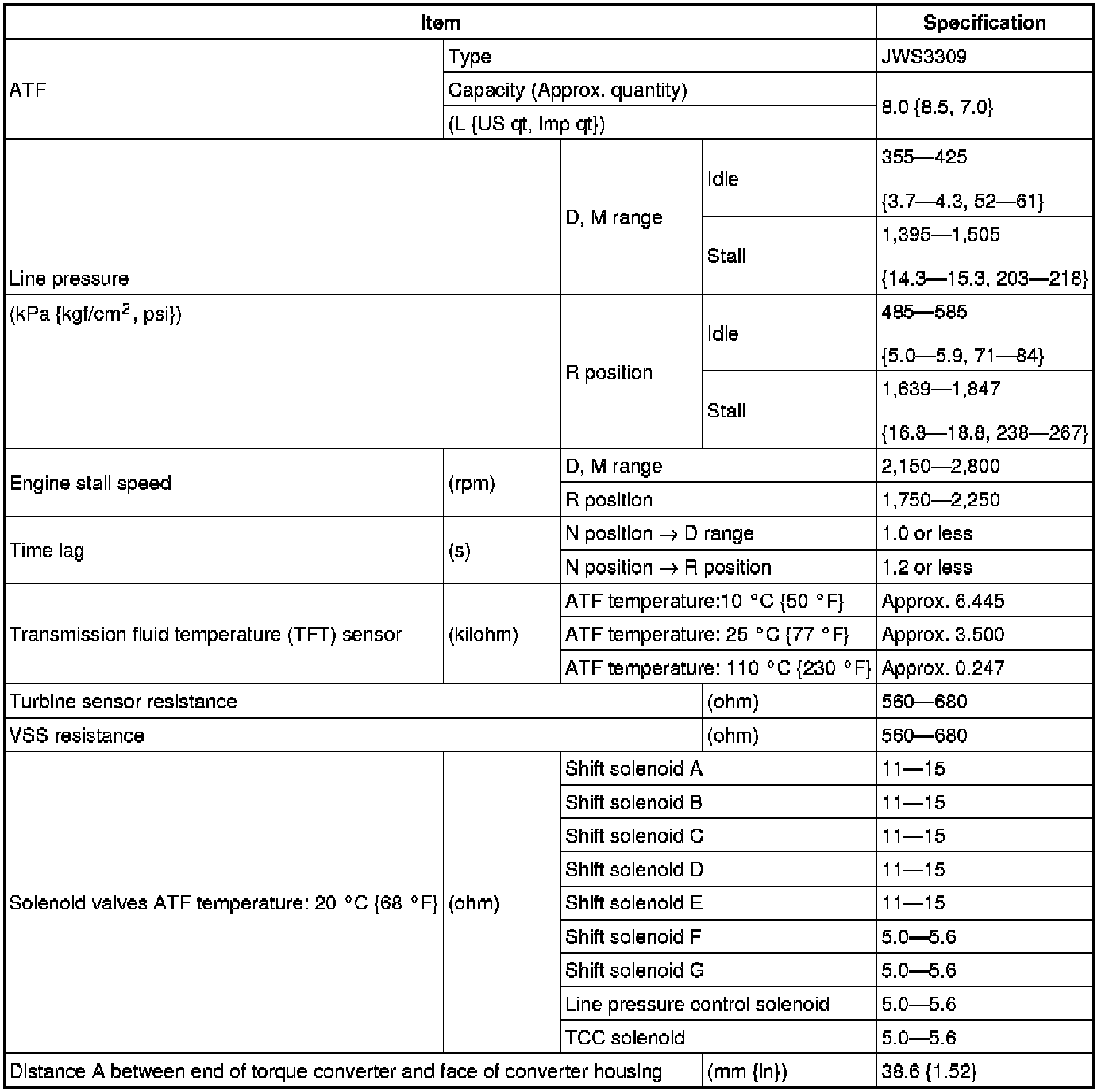 TRANSMISSION/TRANSAXLE TECHNICAL DATA