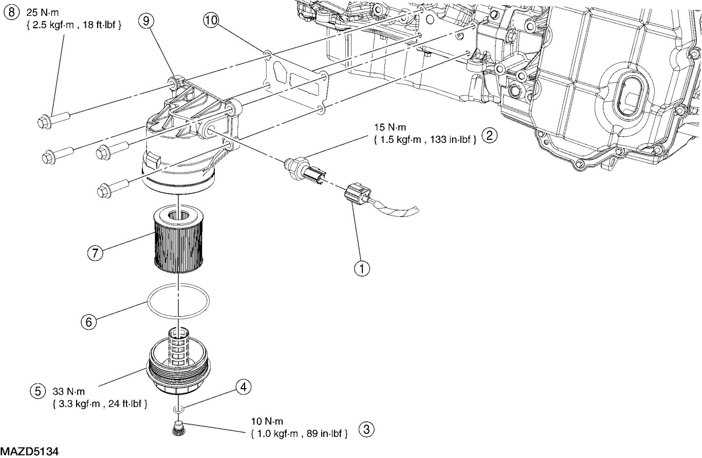 Oil Filter Adapter, Oil Filter Element and Engine Oil Pressure (EOP) Switch
