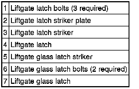 LIFTGATE HANDLE, LOCK AND LATCH - EXPLODED VIEW