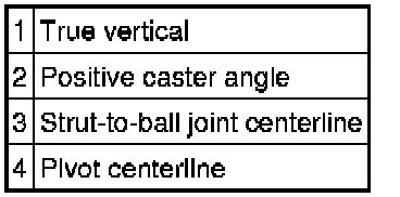 Caster is the deviation from vertical of an imaginary line drawn through the pivot points (top of strut and lower ball joint), when viewed from the side. The caster specifications in this system will give the vehicle the best directional stability characteristics when loaded and driven. The caster setting is not related to tire wear. The caster setting is not adjustable.