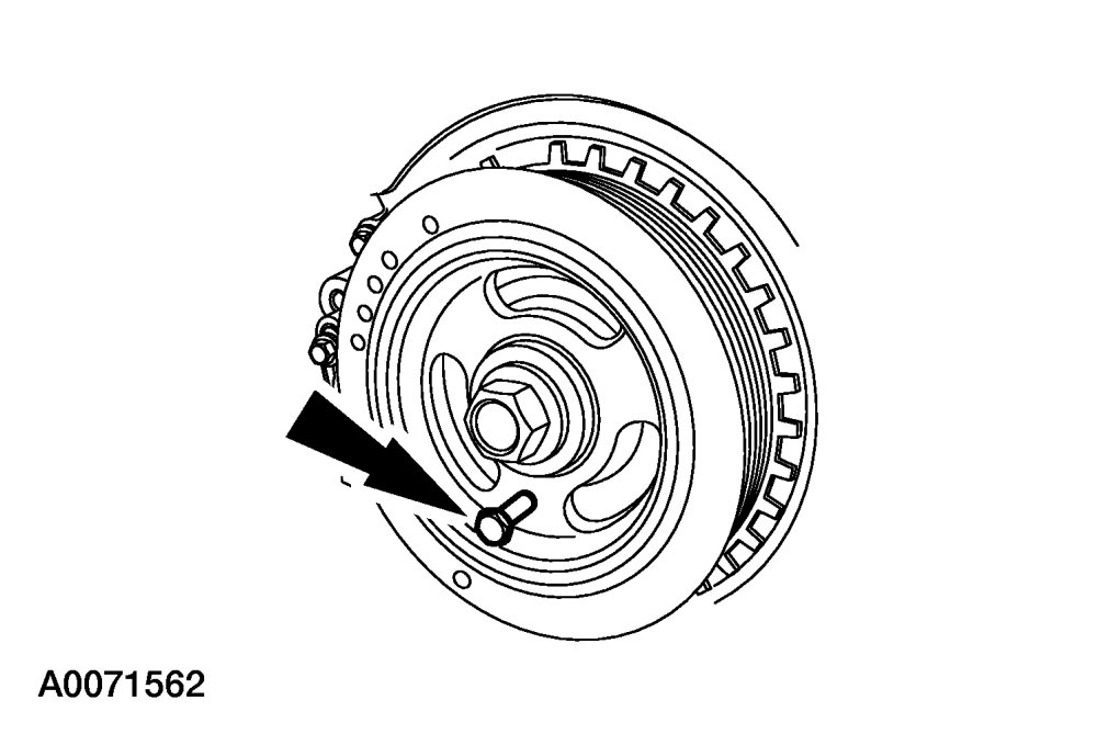 5. Remove the 6 mm (0.23 in) bolt from the crankshaft pulley.