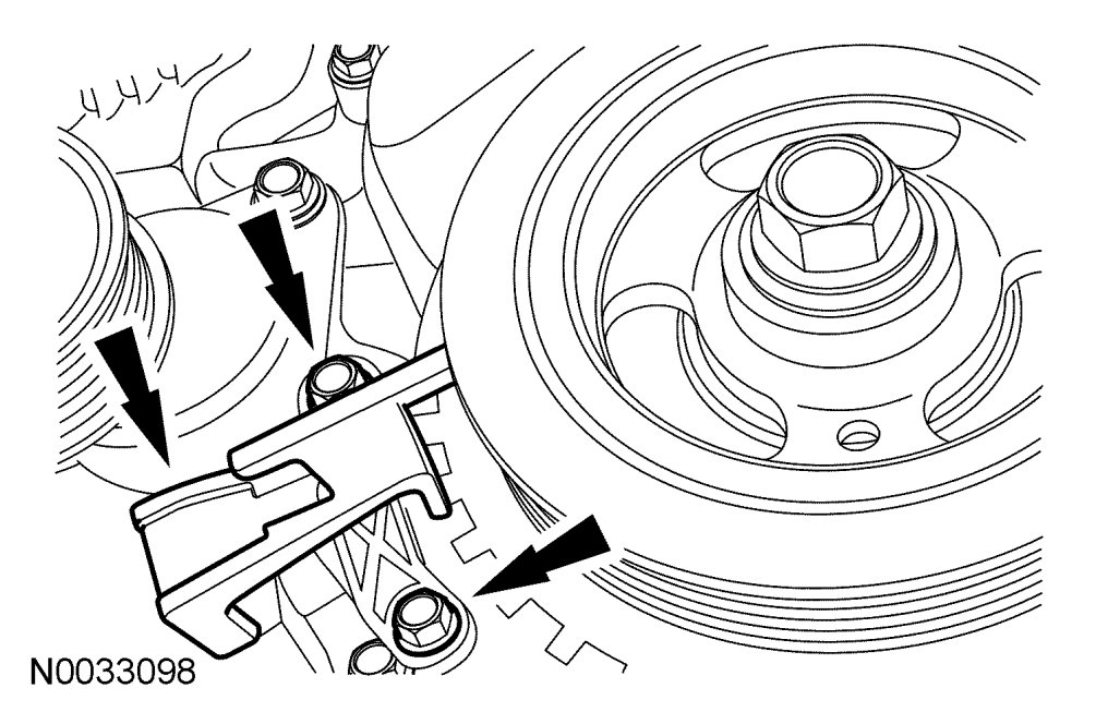 4. Turn the crankshaft pulley bolt to position the number one cylinder at top dead center (TDC) and install the special tool.