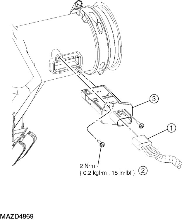 - To install, tighten to 2 Nm {0.2 kgf-m, 18 in-lbf}.
