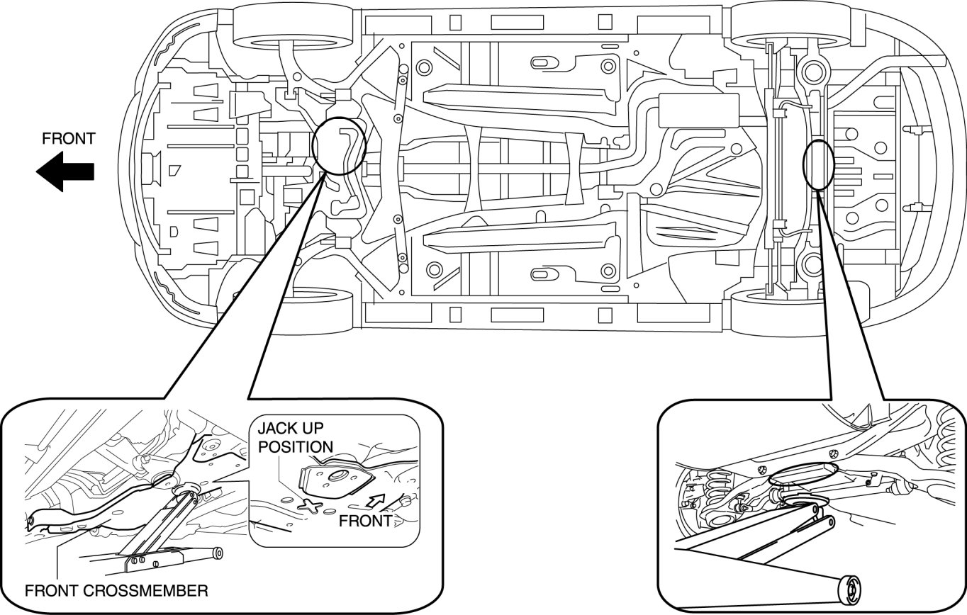 - Improperly jacking a vehicle is dangerous. The vehicle can slip off the jack and cause serious injury. Use only the correct front and rear jacking points and block the wheels.