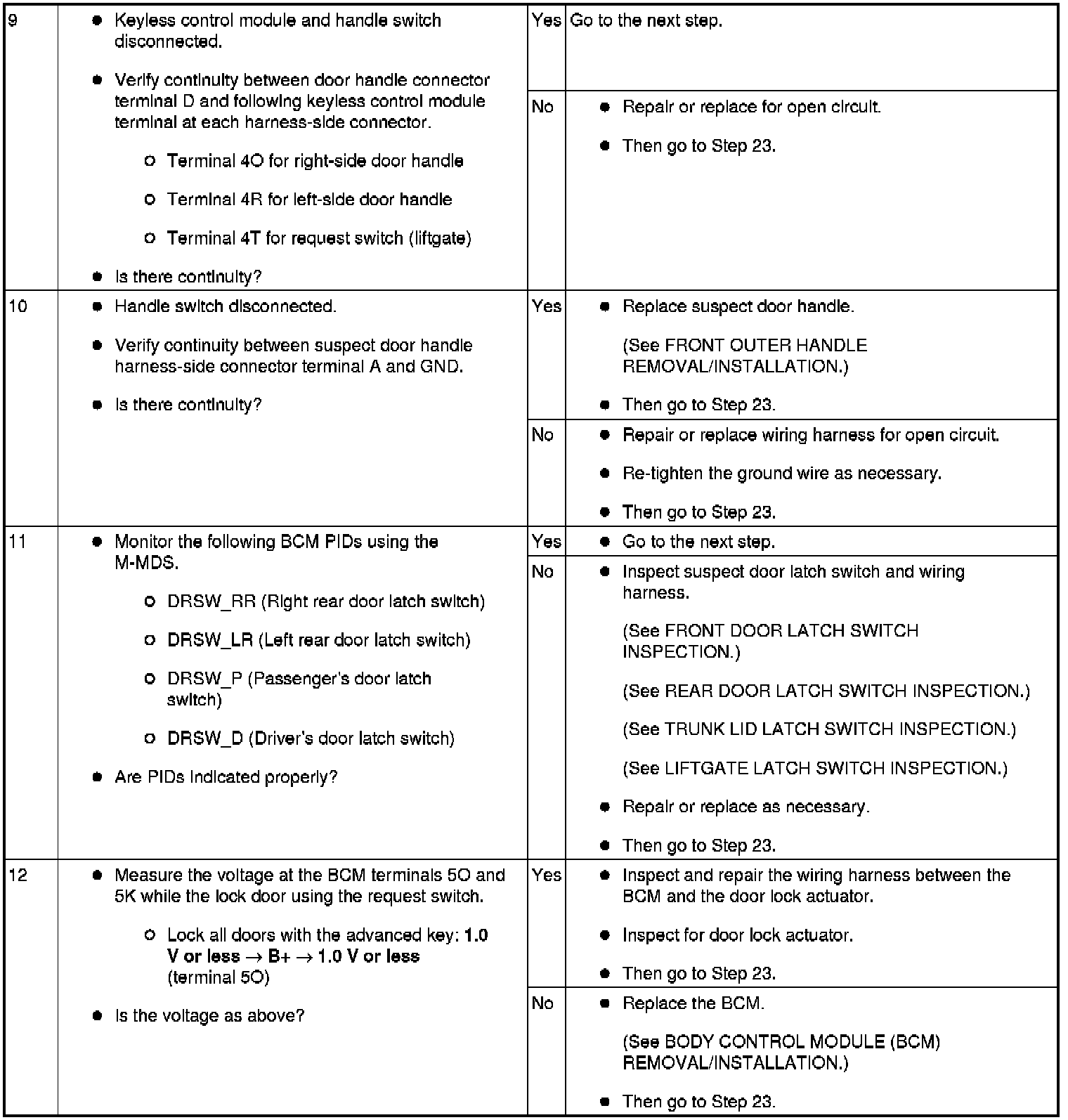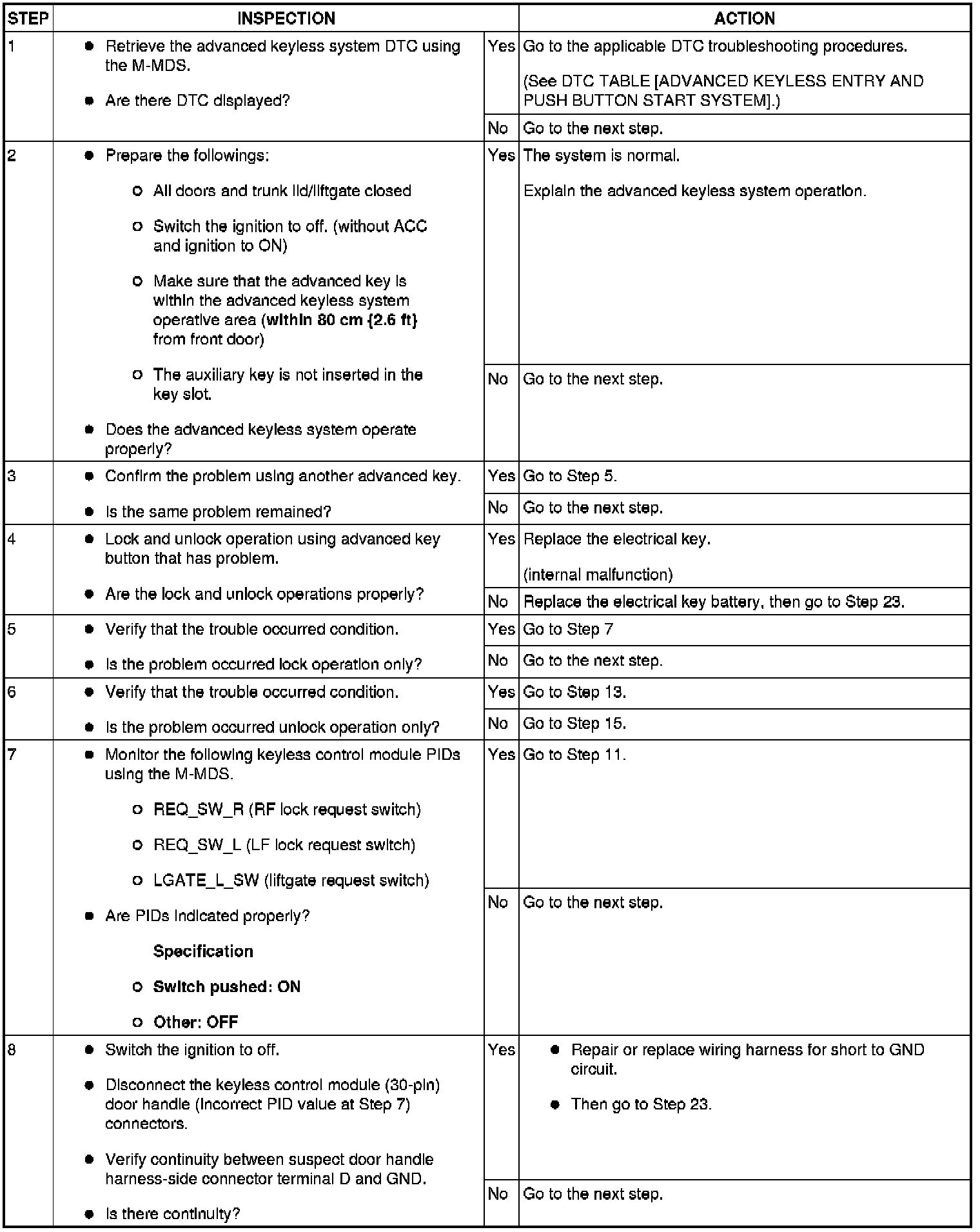 Home >> Mazda >> 2010 >> 3 L4-2.5L >> Repair and Diagnosis >> Body and Frame >> Locks >> Keyless Entry >> Testing and Inspection >> Symptom Related Diagnostic Procedures >> Advanced Keyless Entry And Push Button Start System >> No.2 Advanced Keyless Entry Function Inoperative - Advanced Keyless Entry And Push Button Start System