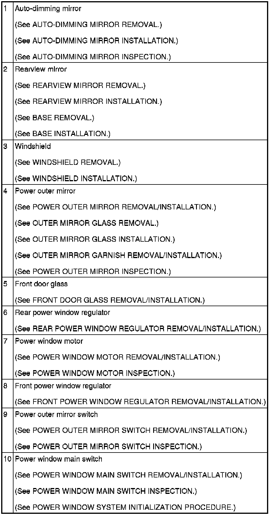 GLASS/WINDOWS/MIRRORS LOCATION INDEX