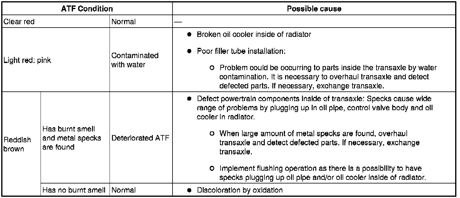 ATF Condition/Possible Cause: