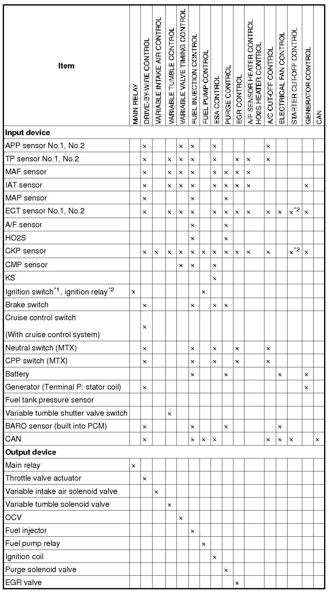 Control System Device And Control Relationship Chart