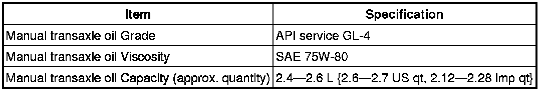 TRANSMISSION/TRANSAXLE TECHNICAL DATA