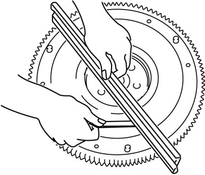 12. Measure the flatness of the flywheel with a straight edge and a feeler gauge.