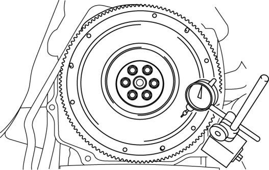 14. Measure the runout of the surface that contacts the clutch disc using a dial gauge.