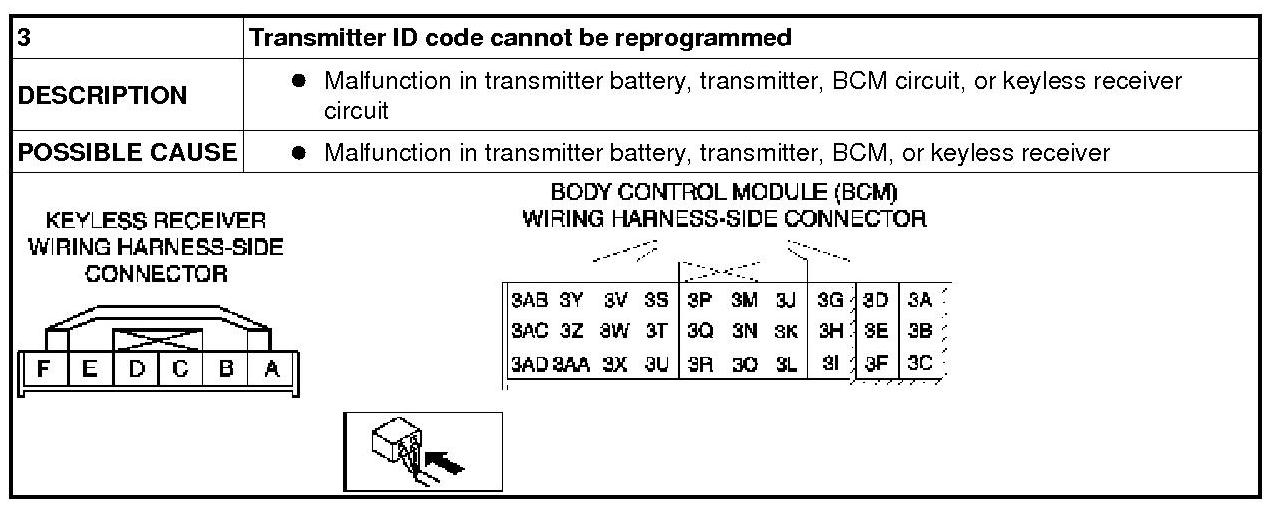 NO.3 TRANSMITTER ID CODE CANNOT BE REPROGRAMMED [KEYLESS ENTRY SYSTEM]