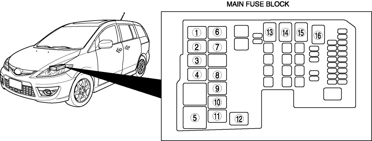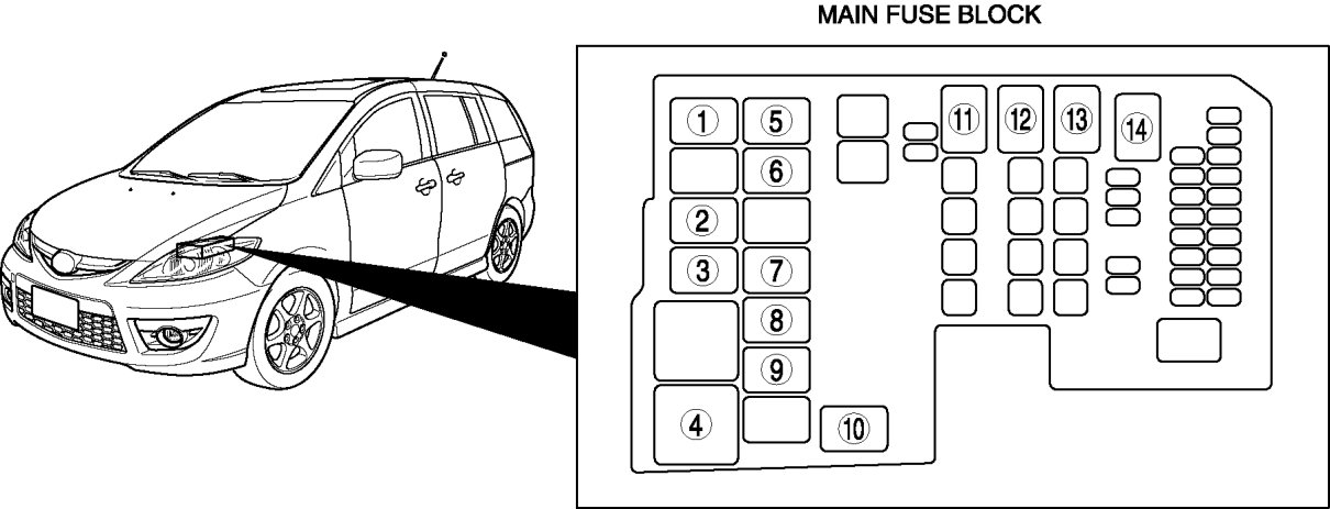 Main Relay (Computer/Fuel System): Locations
