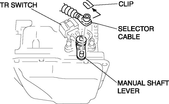 4. Remove the clip and disconnect the selector cable.