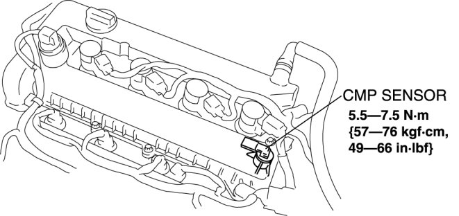 - When replacing the CMP sensor, make sure there is no foreign material on it such as metal shavings. If it is installed with foreign material, the sensor output signal will malfunction resulting from fluctuation in magnetic flux and cause a deterioration in engine control.