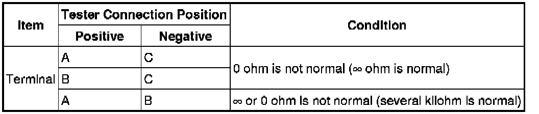 4. Measure the resistance between each terminal on the ignition coil connector using an analog circuit tester.