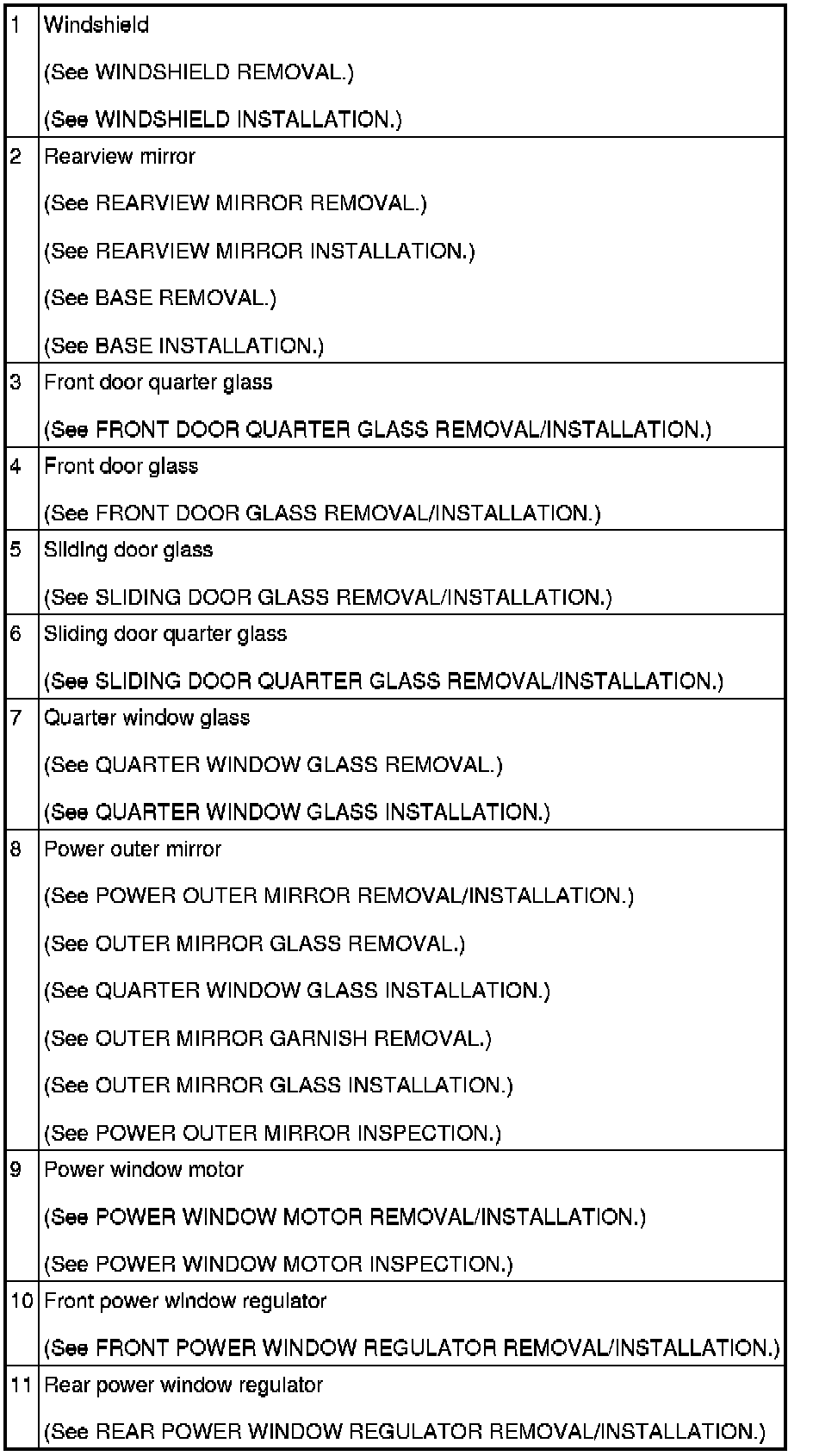 GLASS/WINDOWS/MIRRORS LOCATION INDEX