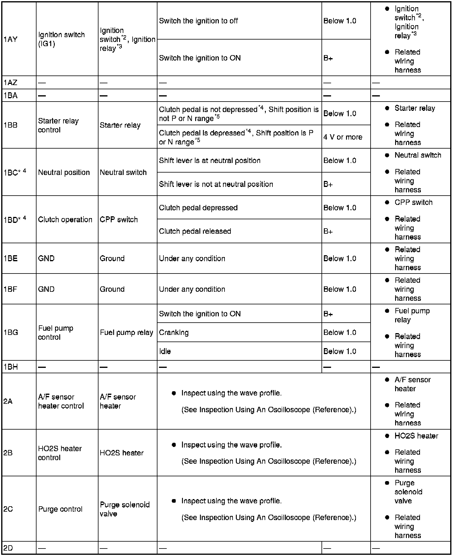 - IGT4(ignition coil No.4): 2H(+)-body ground(-)