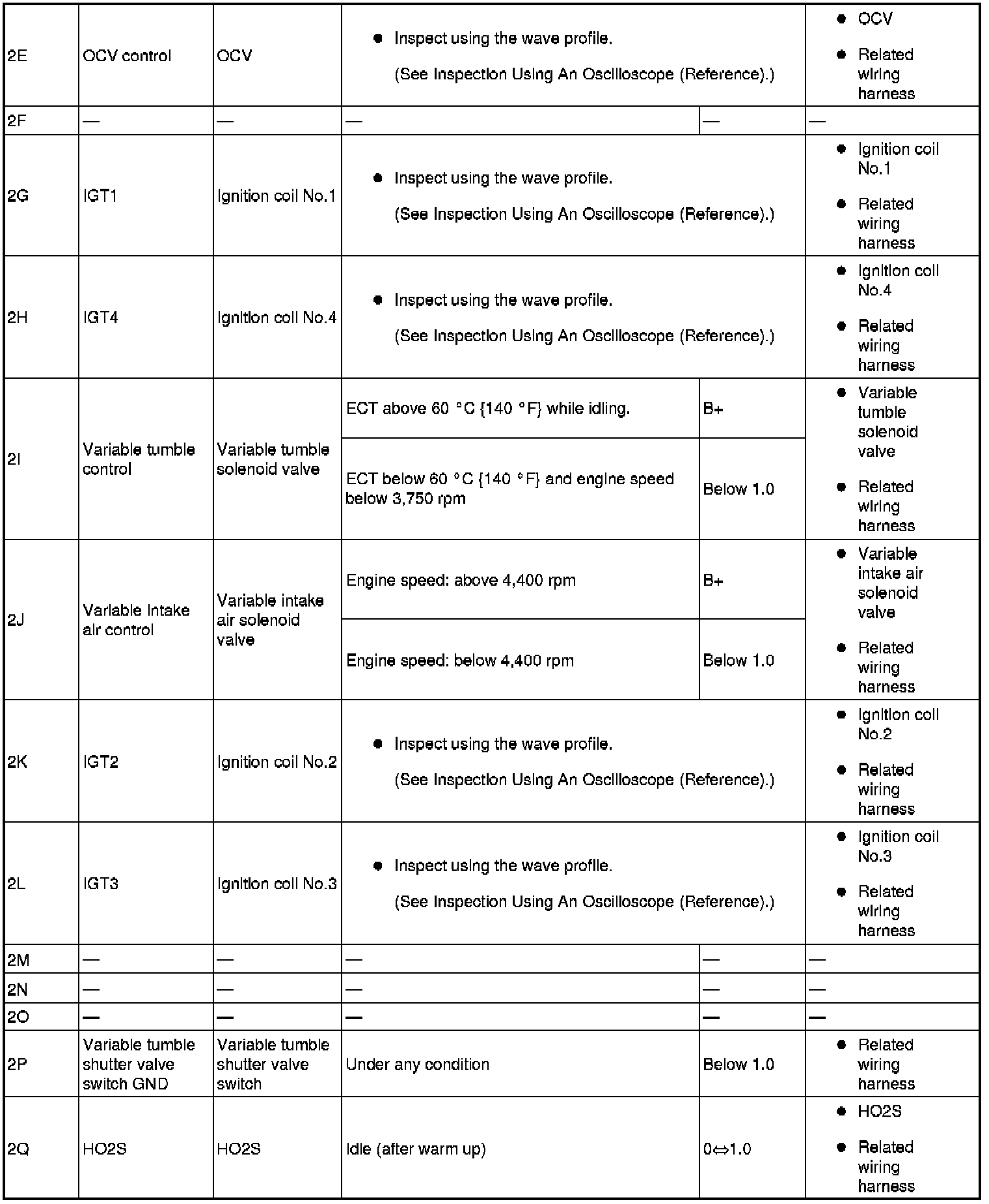 - IGT3(ignition coil No.3): 2L(+)-body ground(-)