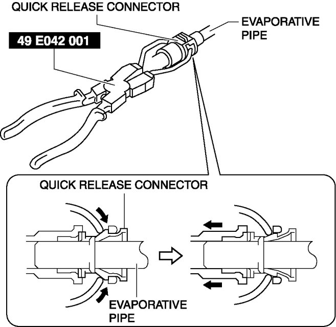 - A checker tab is integrated with the quick release connector for new evaporative hoses. Remove the checker tab from the quick release connector after the connector is completely engaged with the evaporative pipe.