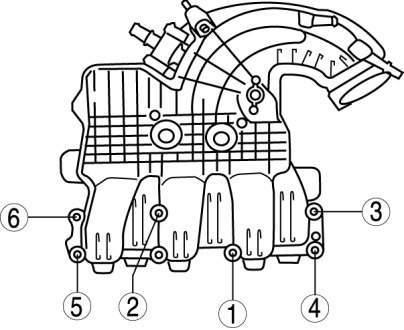 Tighten the intake manifold installation bolts in the order shown.Intake manifold installation bolt tightening torque 9-11 Nm {92-112 kgf-cm, 80-97 in-lbf}