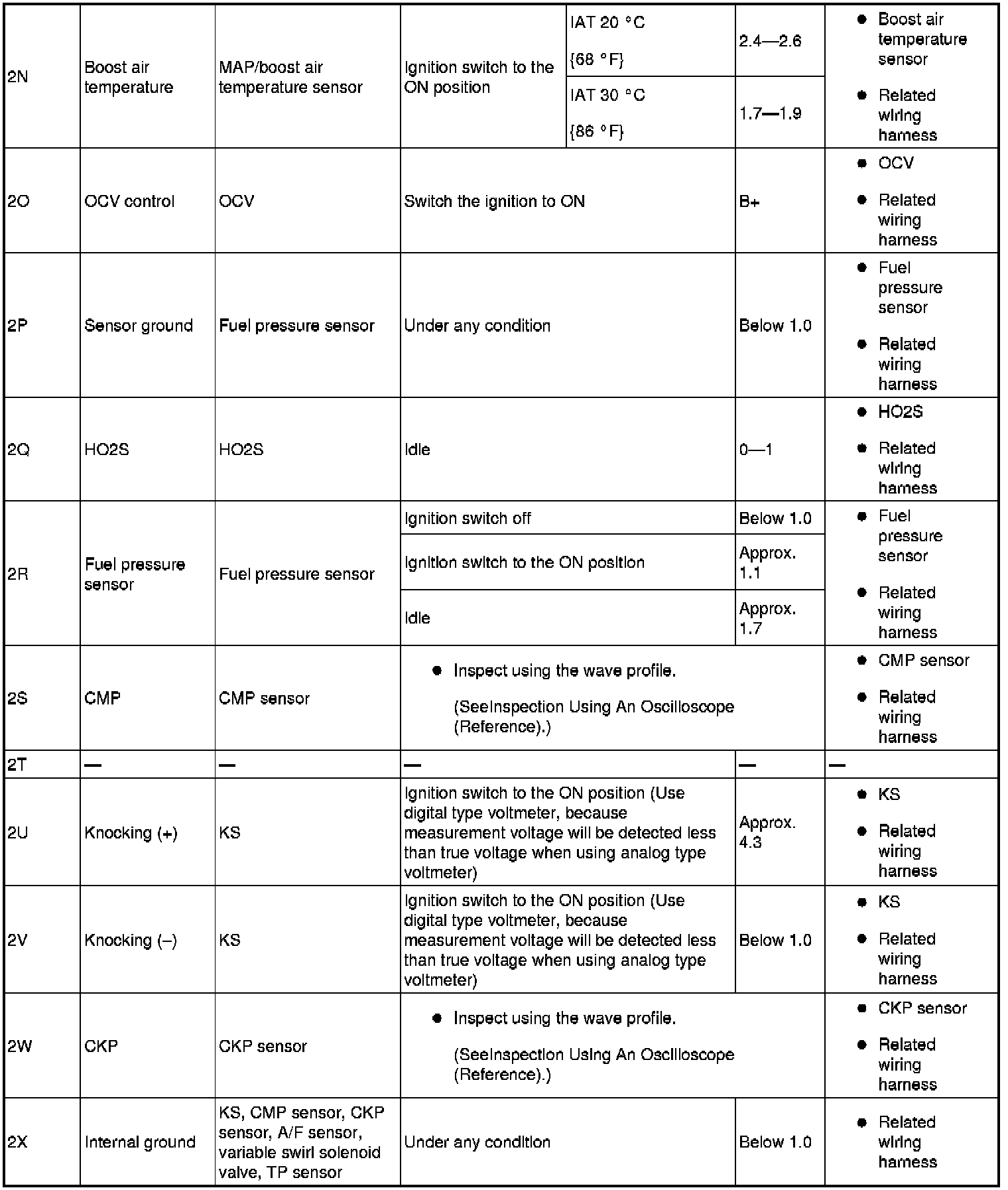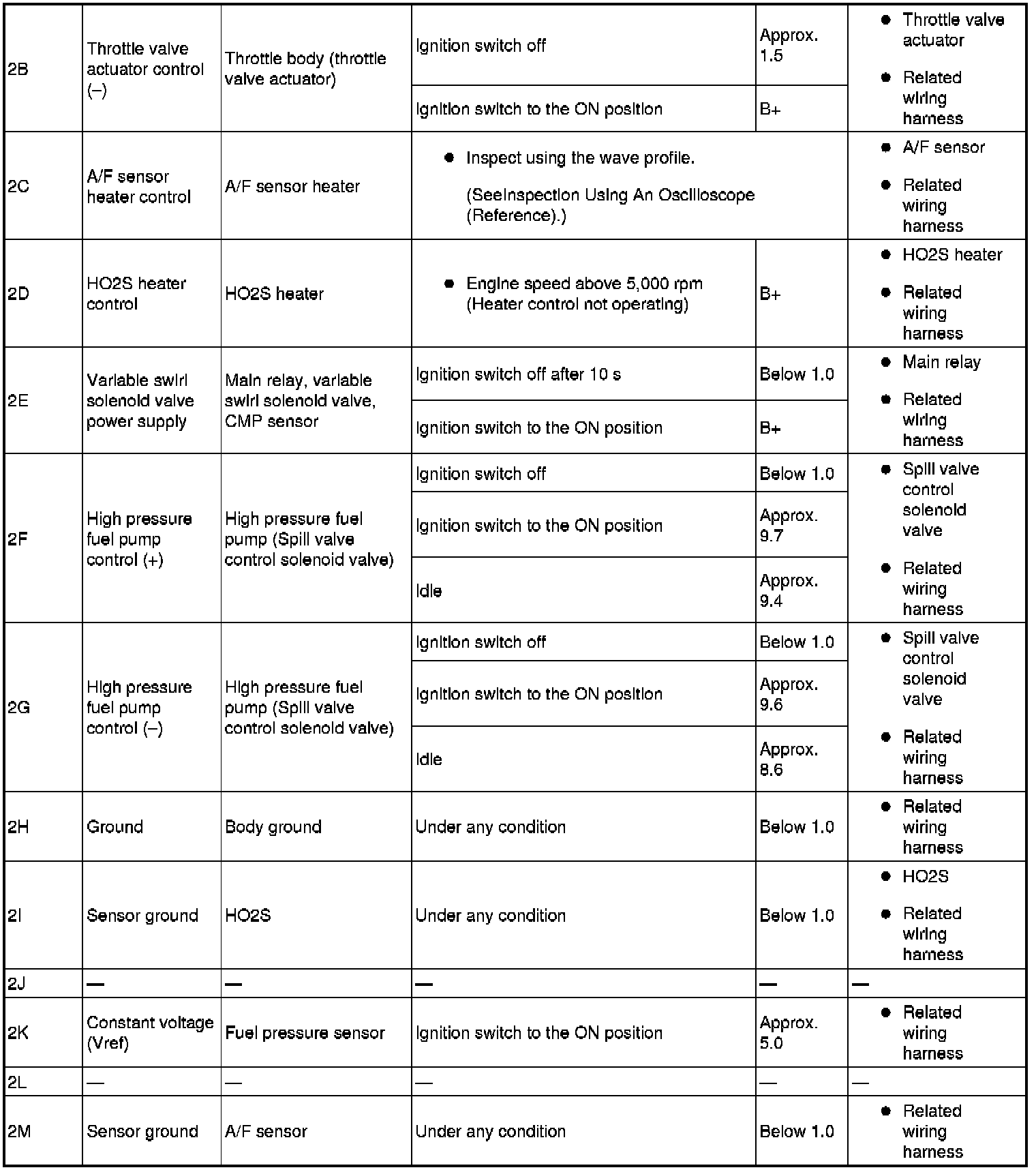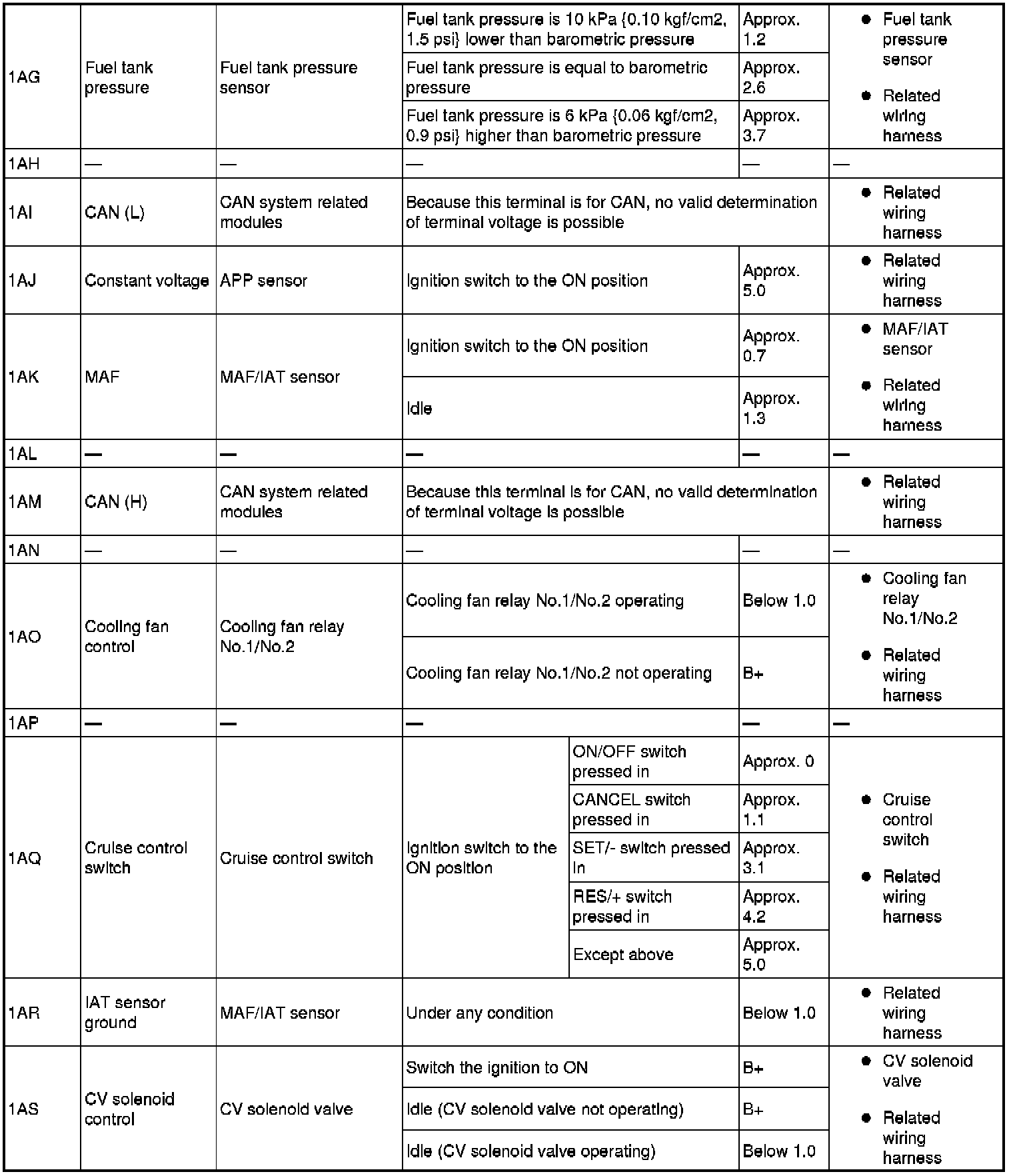 - The PCM terminal voltage can vary with the conditions when measuring and changes due to aged deterioration on the vehicle, causing false diagnosis. Therefore determine comprehensively where the malfunction occurs among the input systems, output systems, and the PCM.