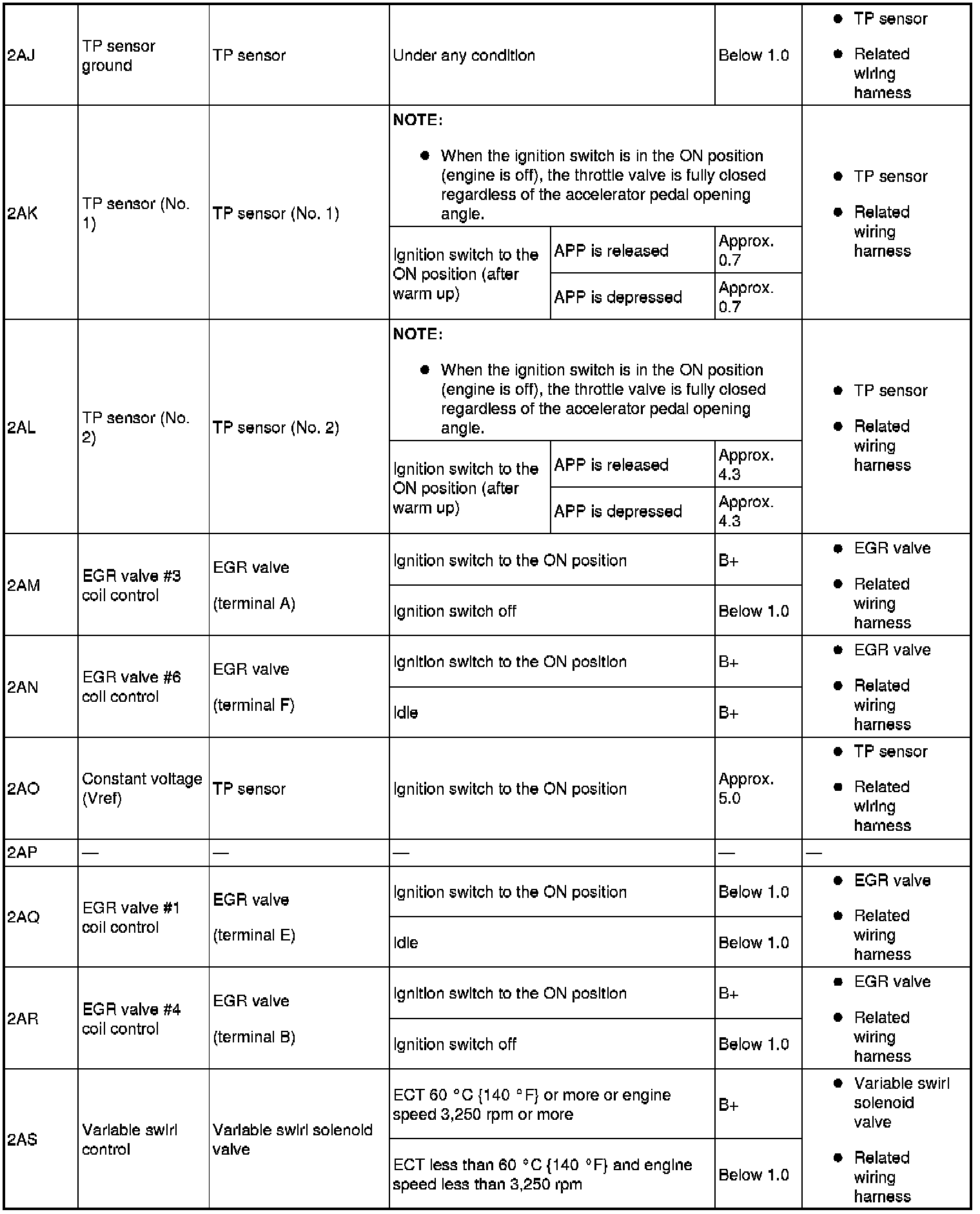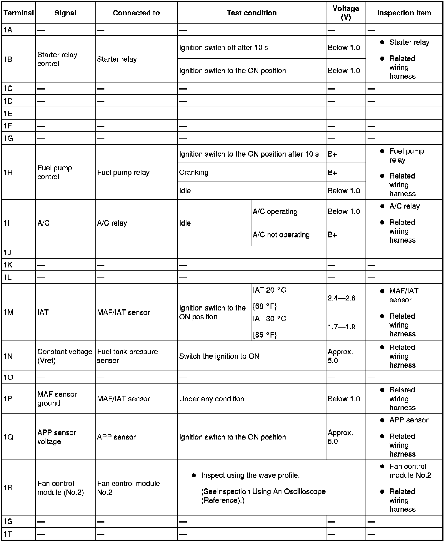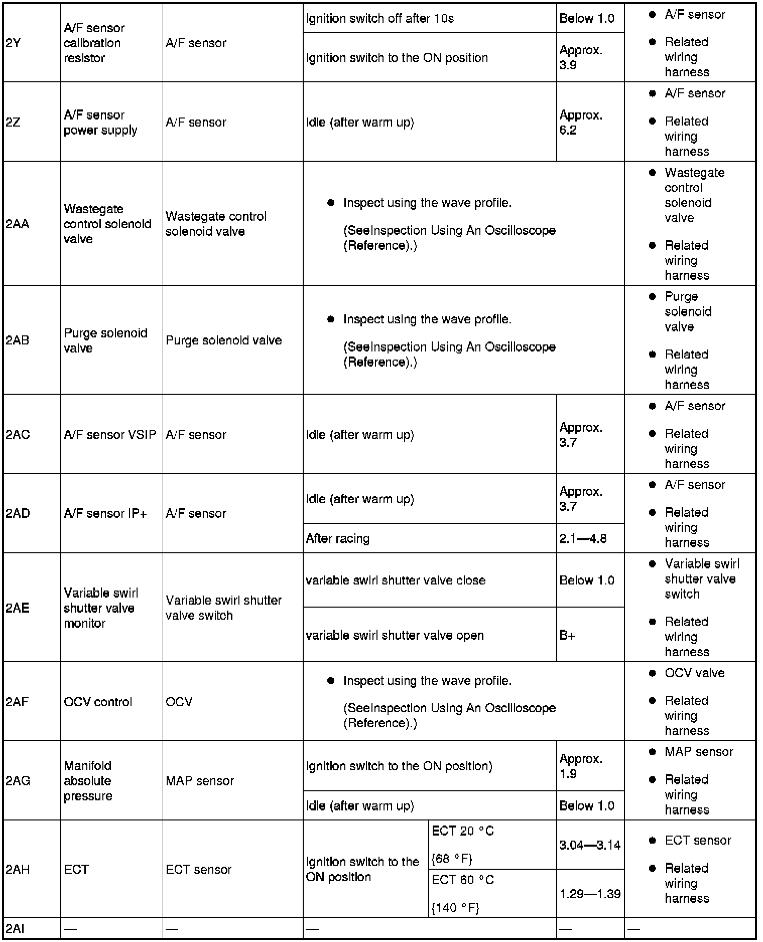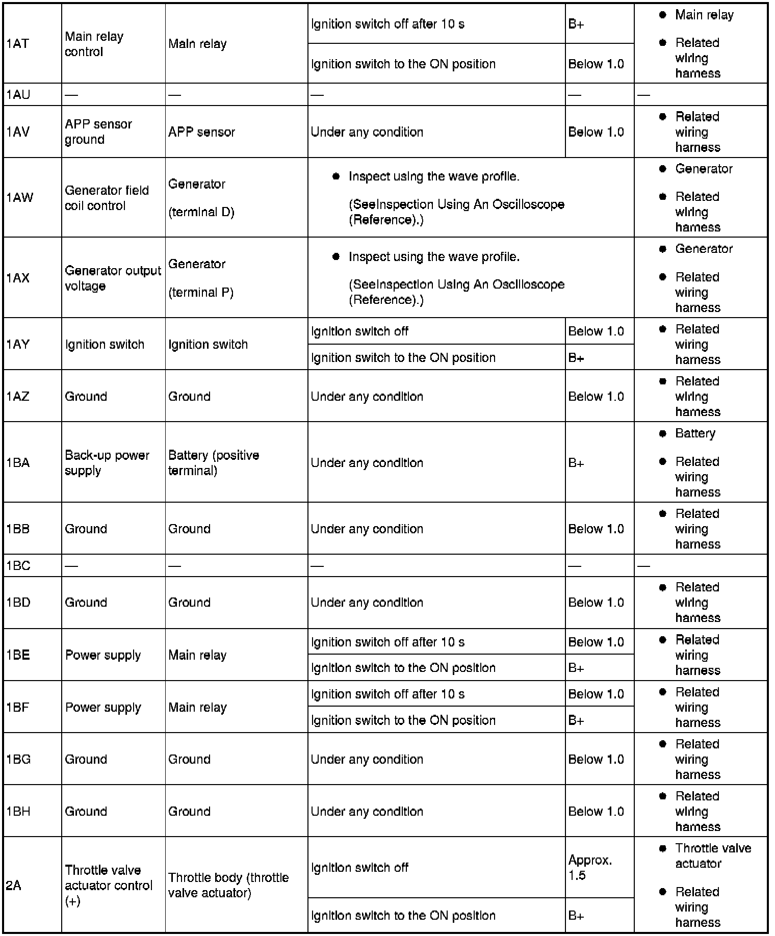 - The PCM terminal voltage can vary with the conditions when measuring and changes due to aged deterioration on the vehicle, causing false diagnosis. Therefore determine comprehensively where the malfunction occurs among the input systems, output systems, and the PCM.