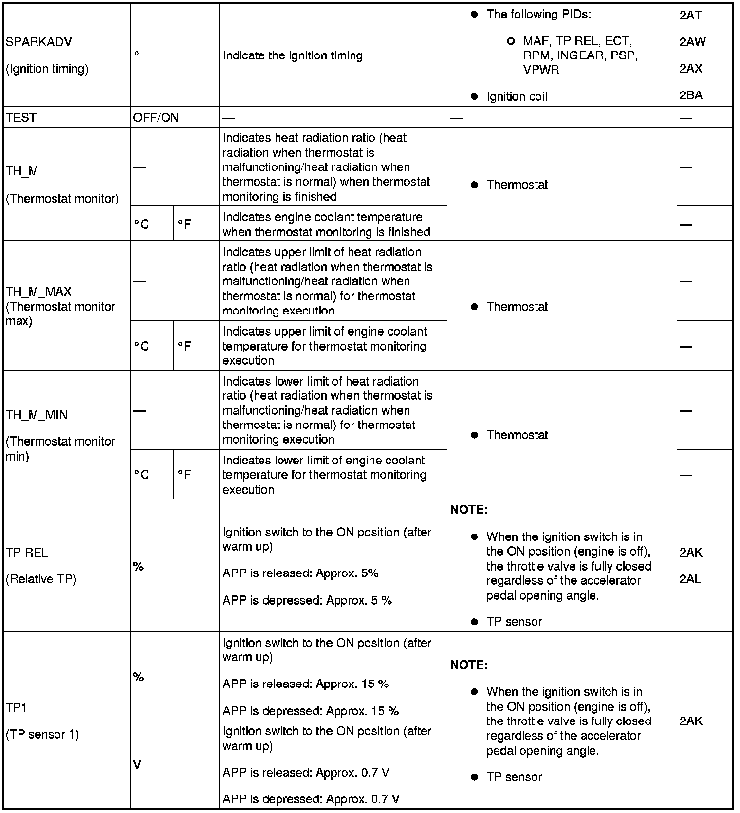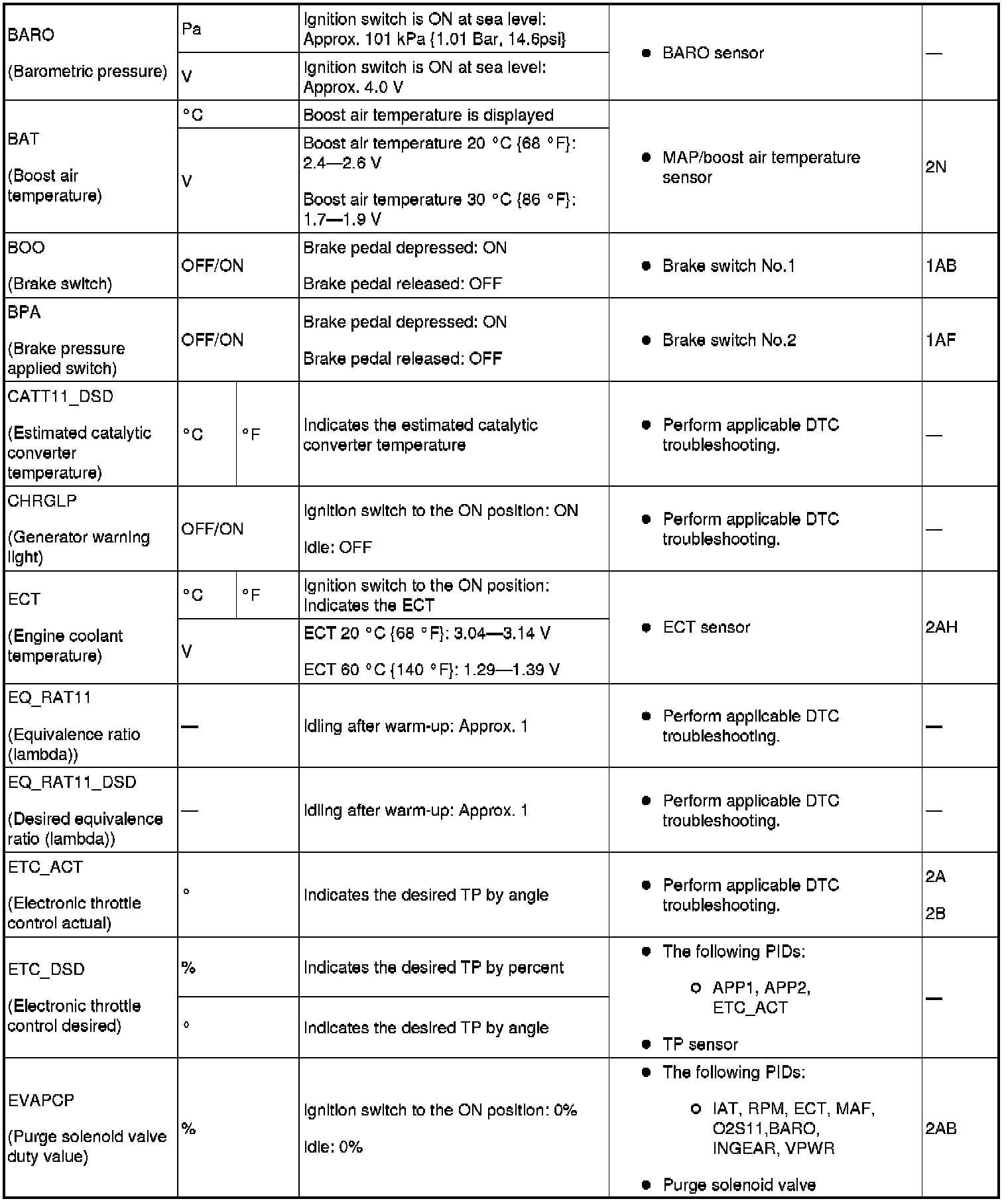 - PIDs for the following parts are not available on this model. Perform the specific inspections for the following parts: