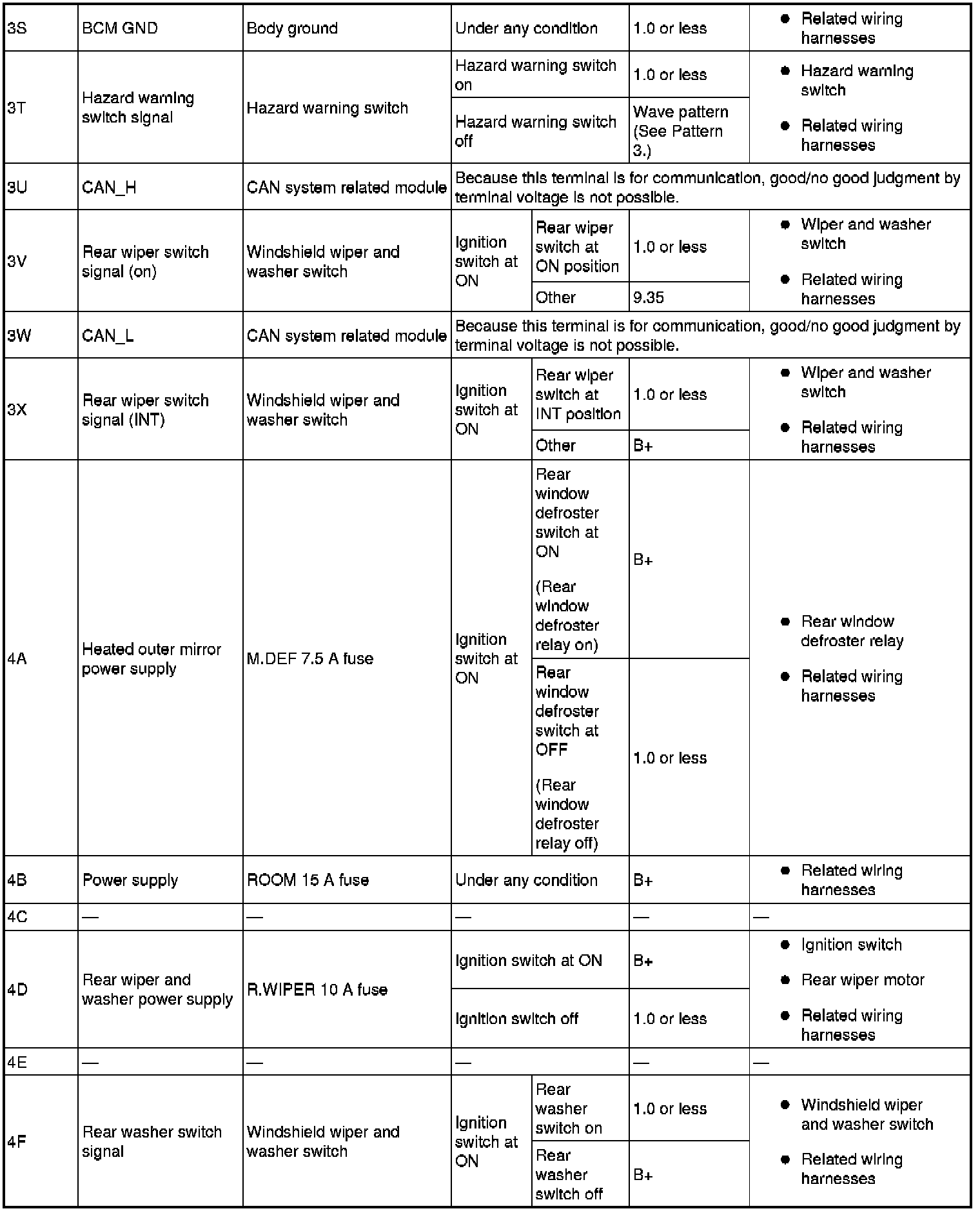 - Hazard warning switch signal: 3T (+) - body ground (-)