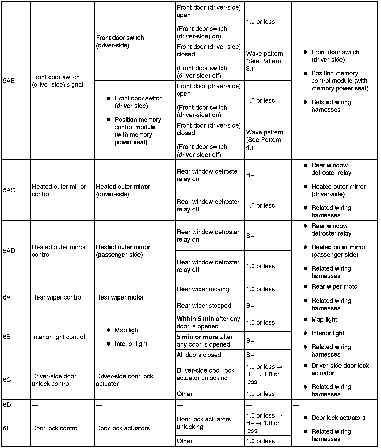 - Lock/unlock input (rear door lock-link switch (RH)): 5E (+) - body ground (-)