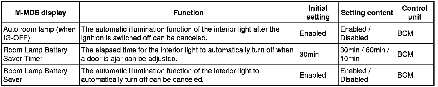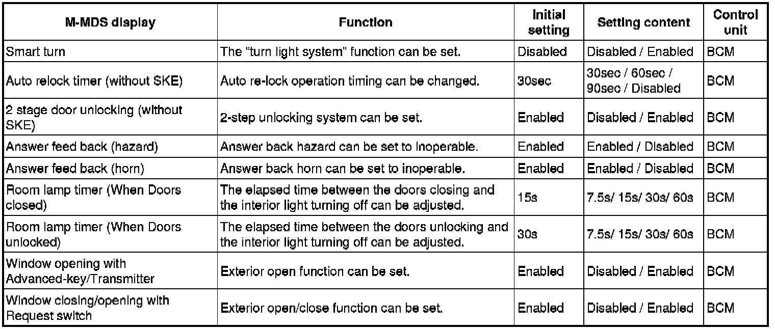 - Select "Personality", "Interior lighting", "Washer/ Wiper", "Security" or "Power Door Locks".