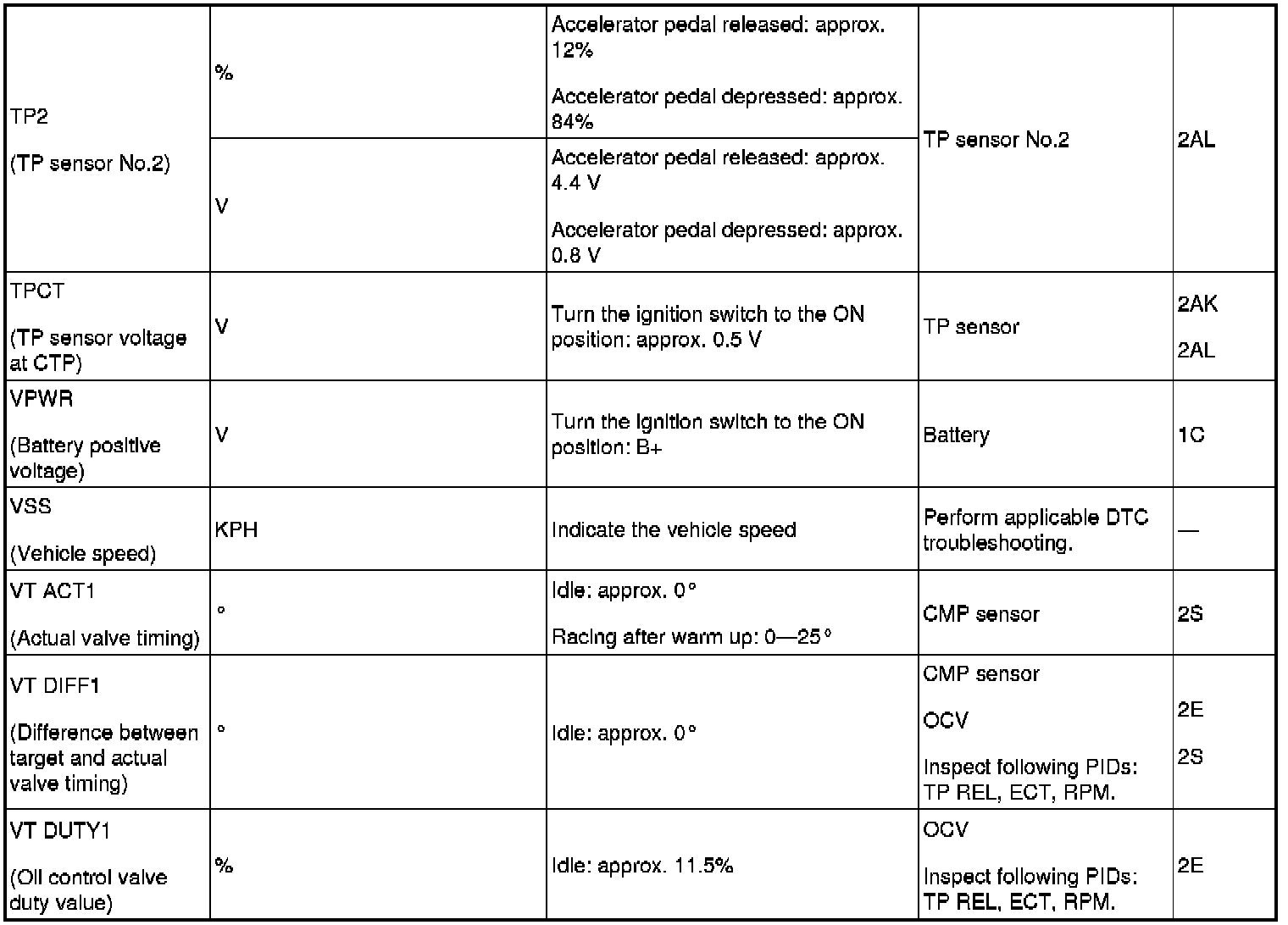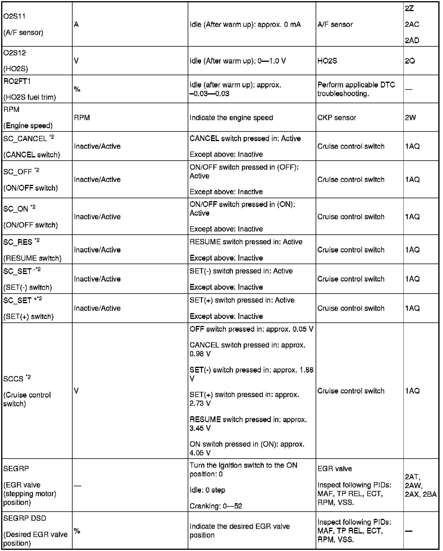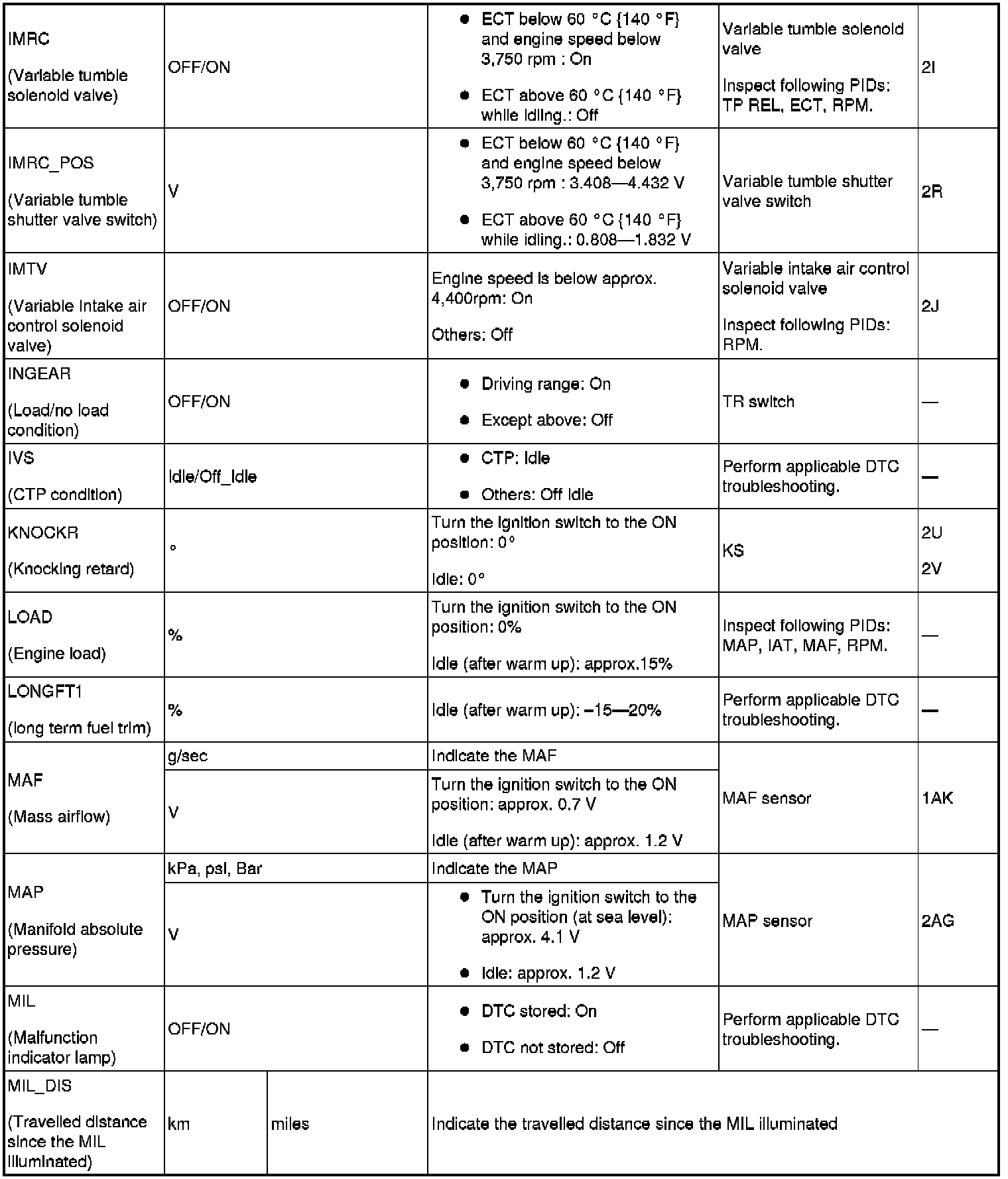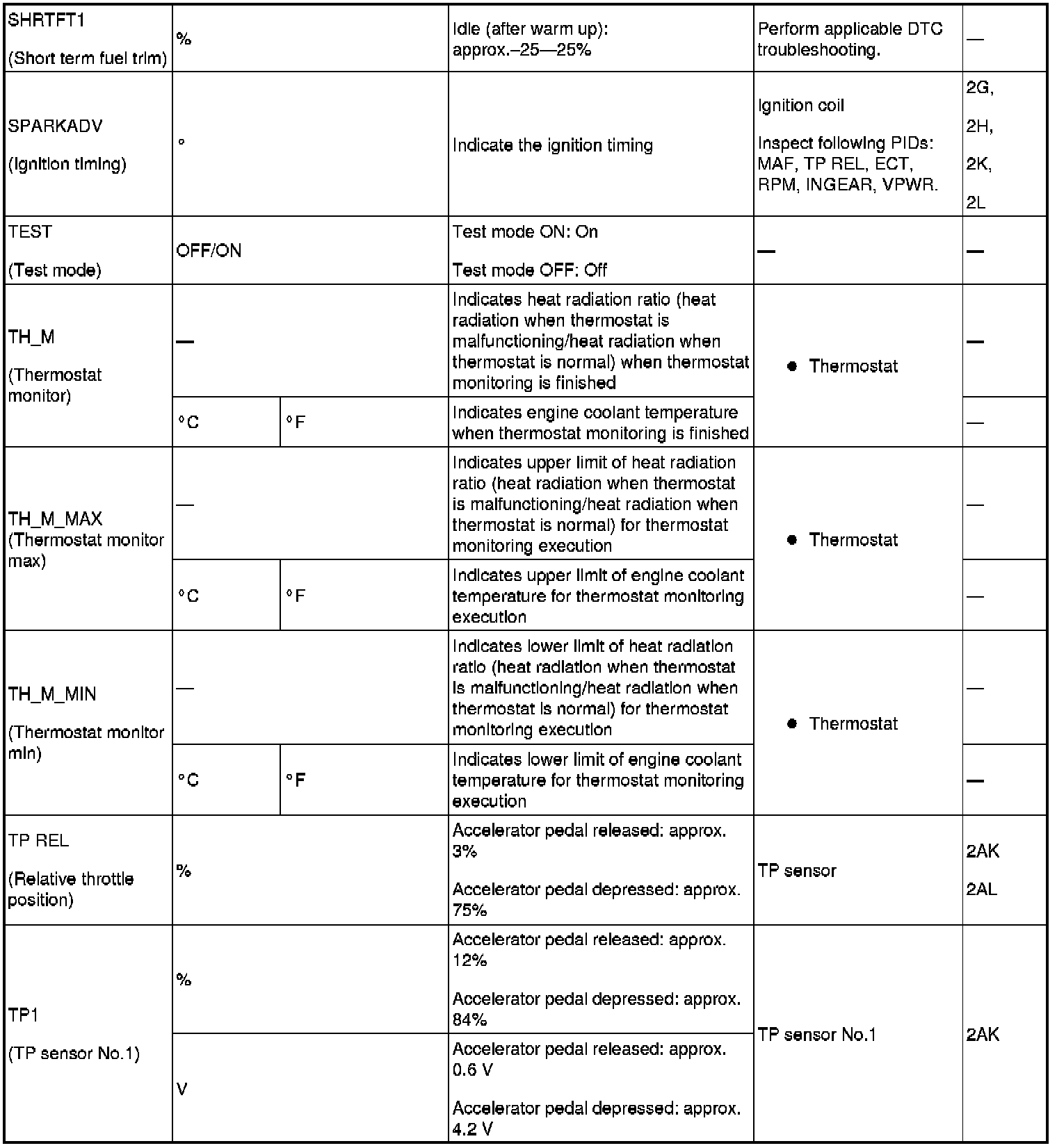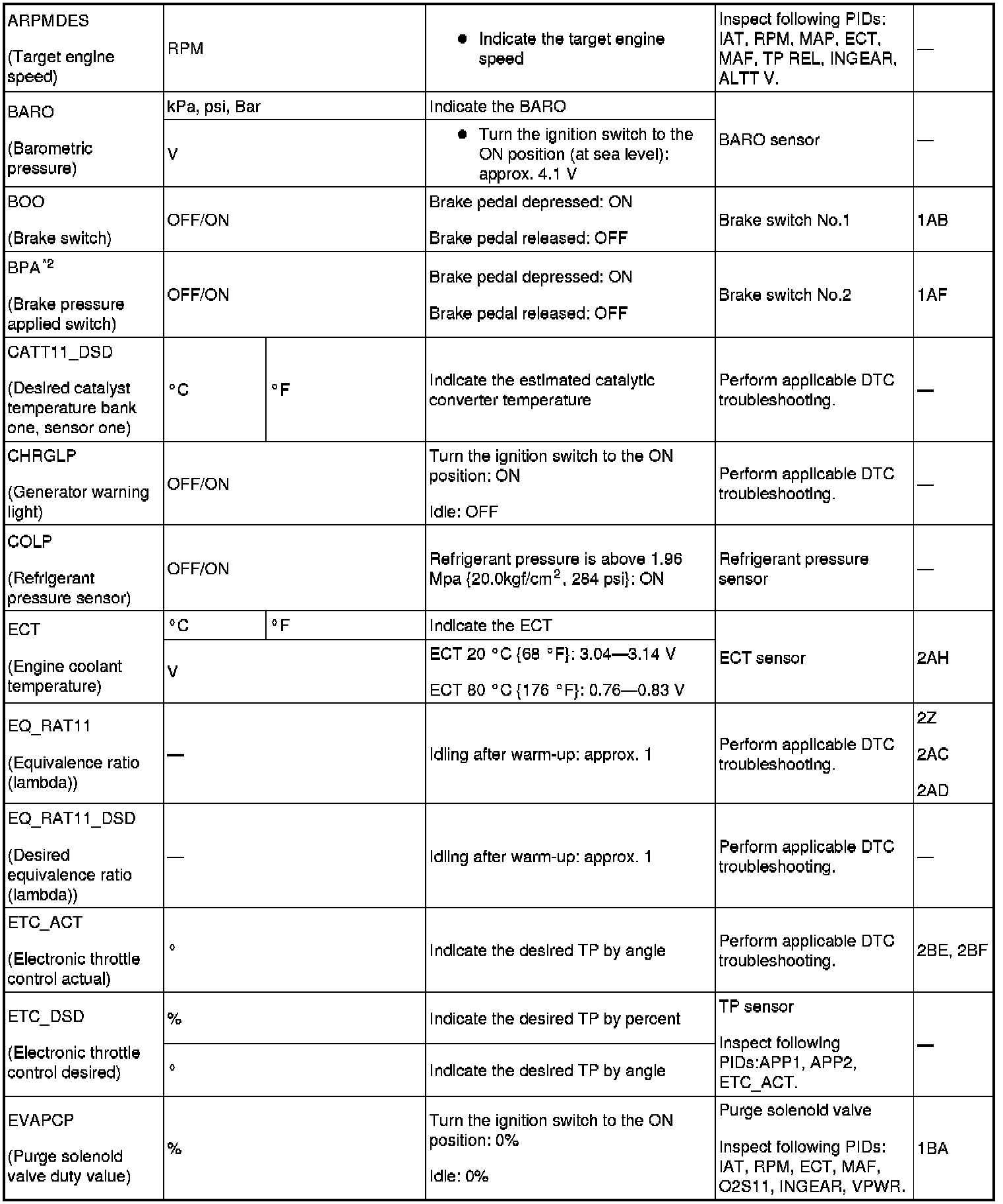 PID/DATA Monitor Table (Reference) (Part 2):