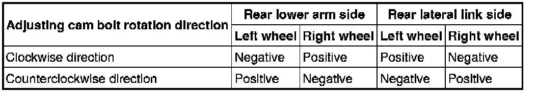2. Rotate the adjusting cam bolt in either direction to adjust the camber and total toe-in.