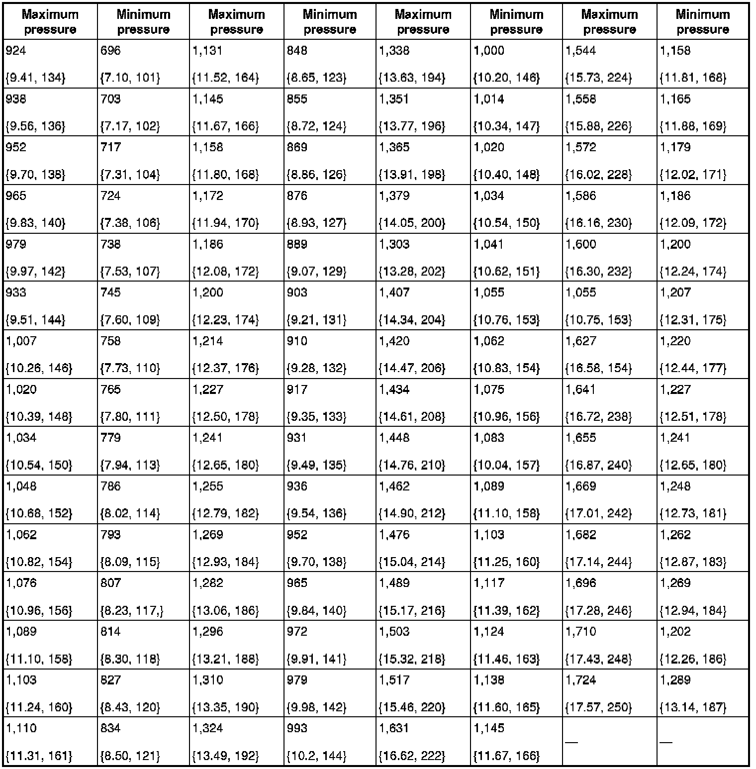 Compression Pressure Limit Chart (kPa {kgf/cm2, psi})