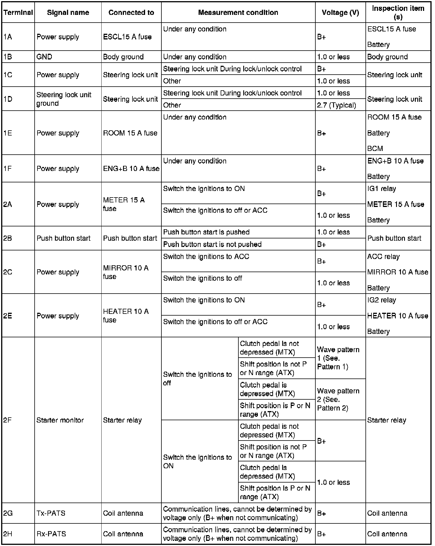 - If the voltages cannot be verified as indicated in the terminal voltage table, inspect the parts under "Inspection item (s)".