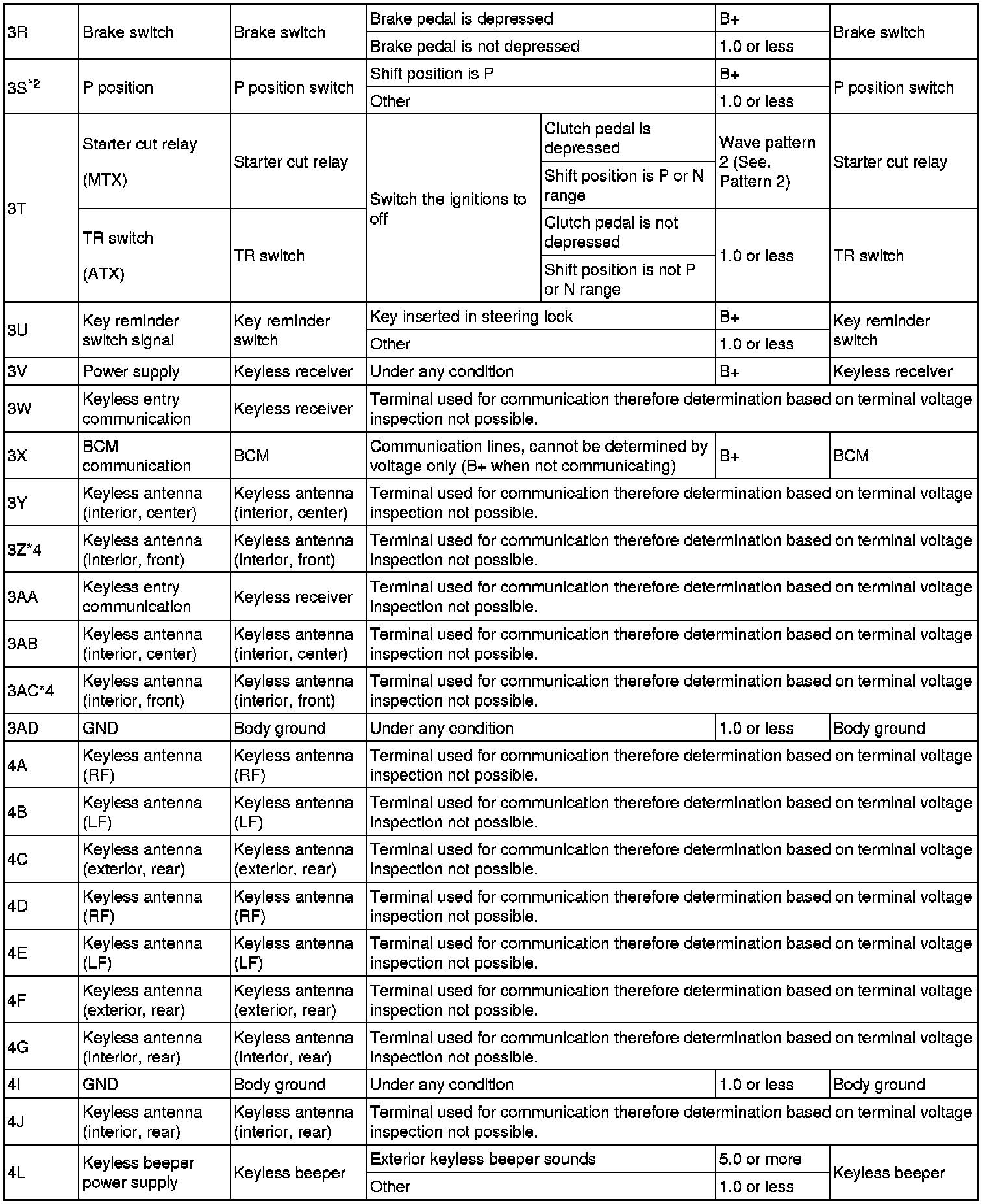 - Door lock-link switch (driver's door): 4U (+) and body ground (-)