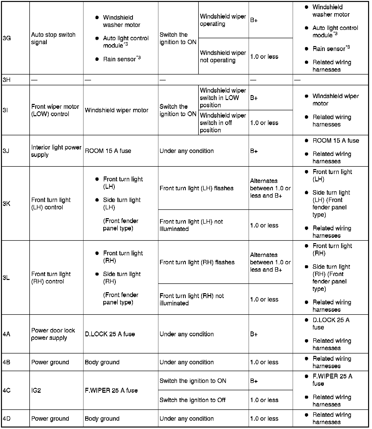 - Front door switch (passenger side) signal: 6H (+) and body ground (-)