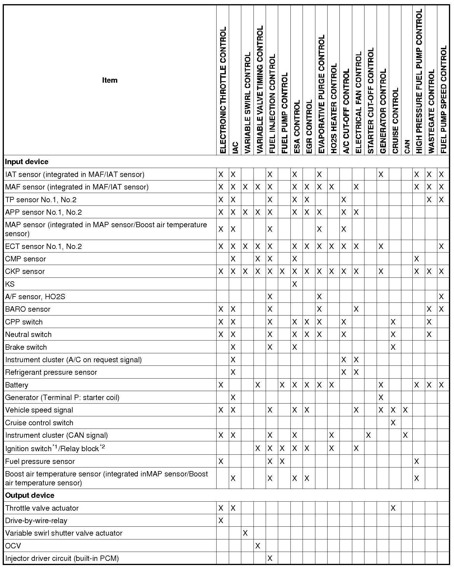 Control System Device And Control Relationship Chart