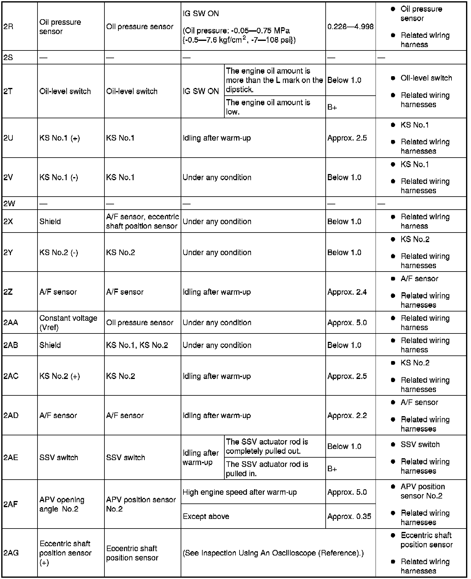 - The PCM terminal voltages vary with change in measuring conditions and vehicle conditions. Always carry out a total inspection of the input systems, output systems, and PCM to determine the cause of trouble. Otherwise, a wrong diagnosis will be made.