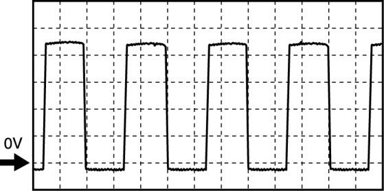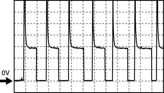 - Oscilloscope setting: 5 V/DIV (Y): 0.4 ms/DIV (X), DC range