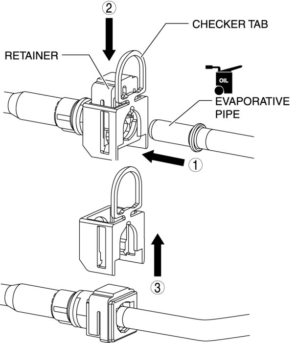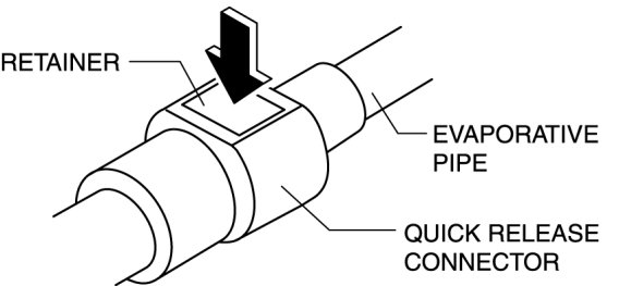 - A checker tab is integrated with the quick release connector for new evaporative hoses. Remove the checker tab from the quick release connector after the connector is completely engaged with the evaporative pipe.