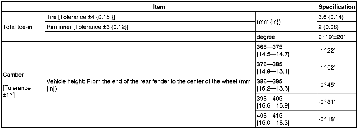 - Difference between the left and right camber angle is within 1°.