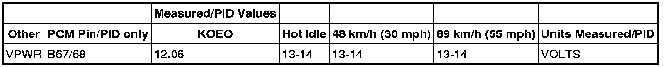 Typical Diagnostic Reference Values (3.0L)